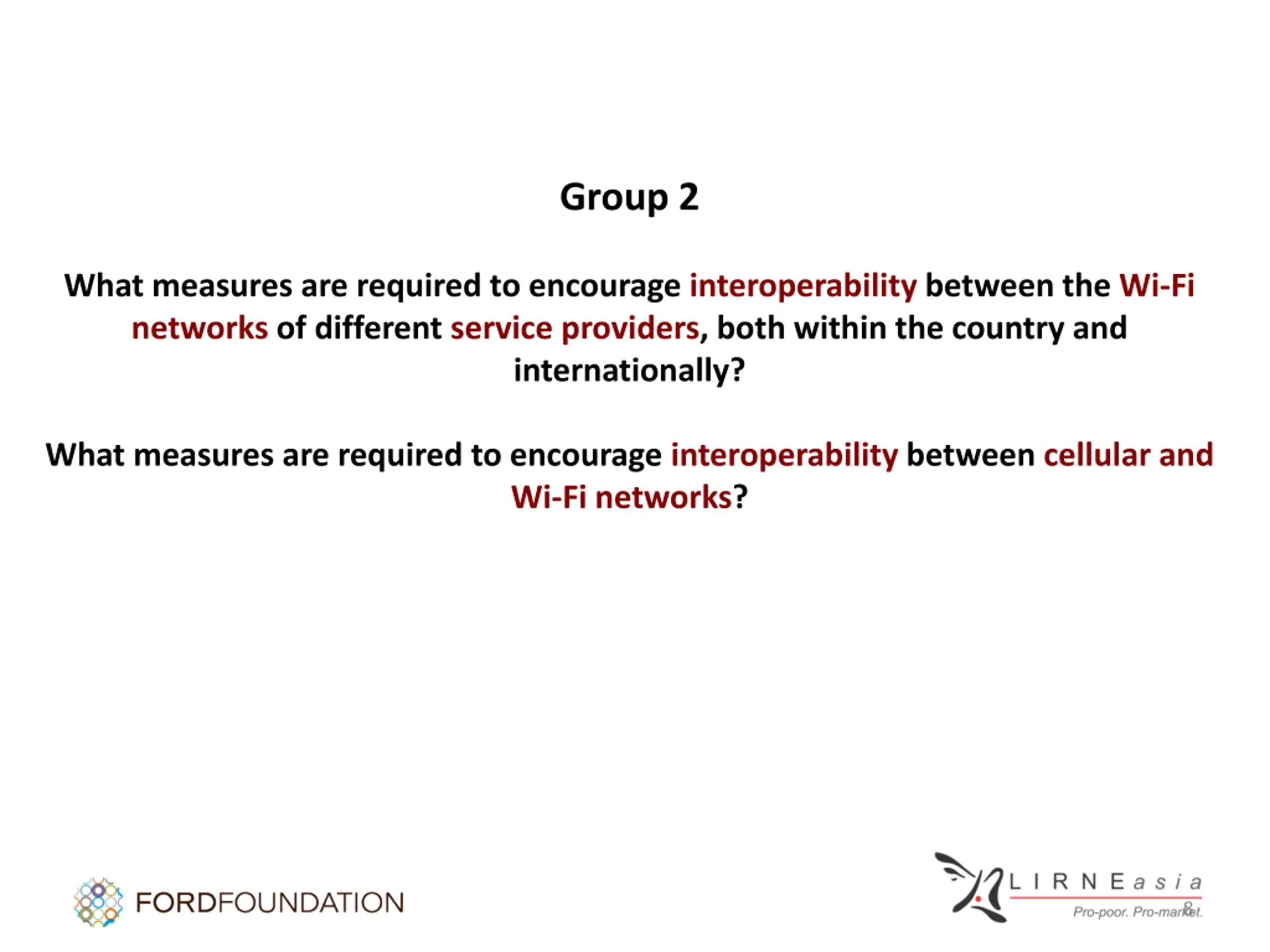 - Group 2 What measures are required to encourage interoperability between the Wi-Fi networks of different service providers, both within the country and internationally? What measures are required to encourage interoperability between cellular and Wi-Fi networks? 8