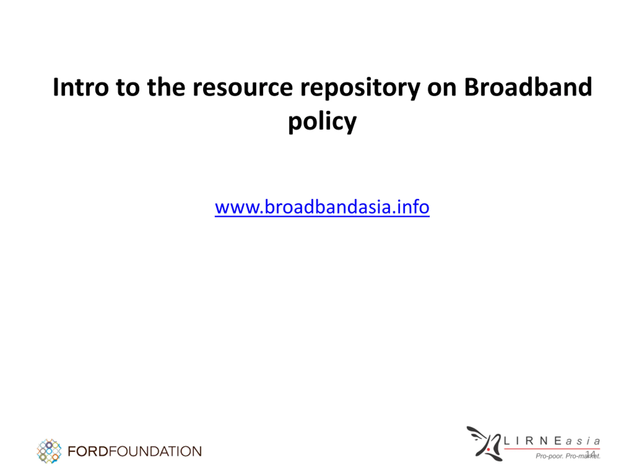 - Intro to the resource repository on Broadband policy www.broadbandasia.info 14