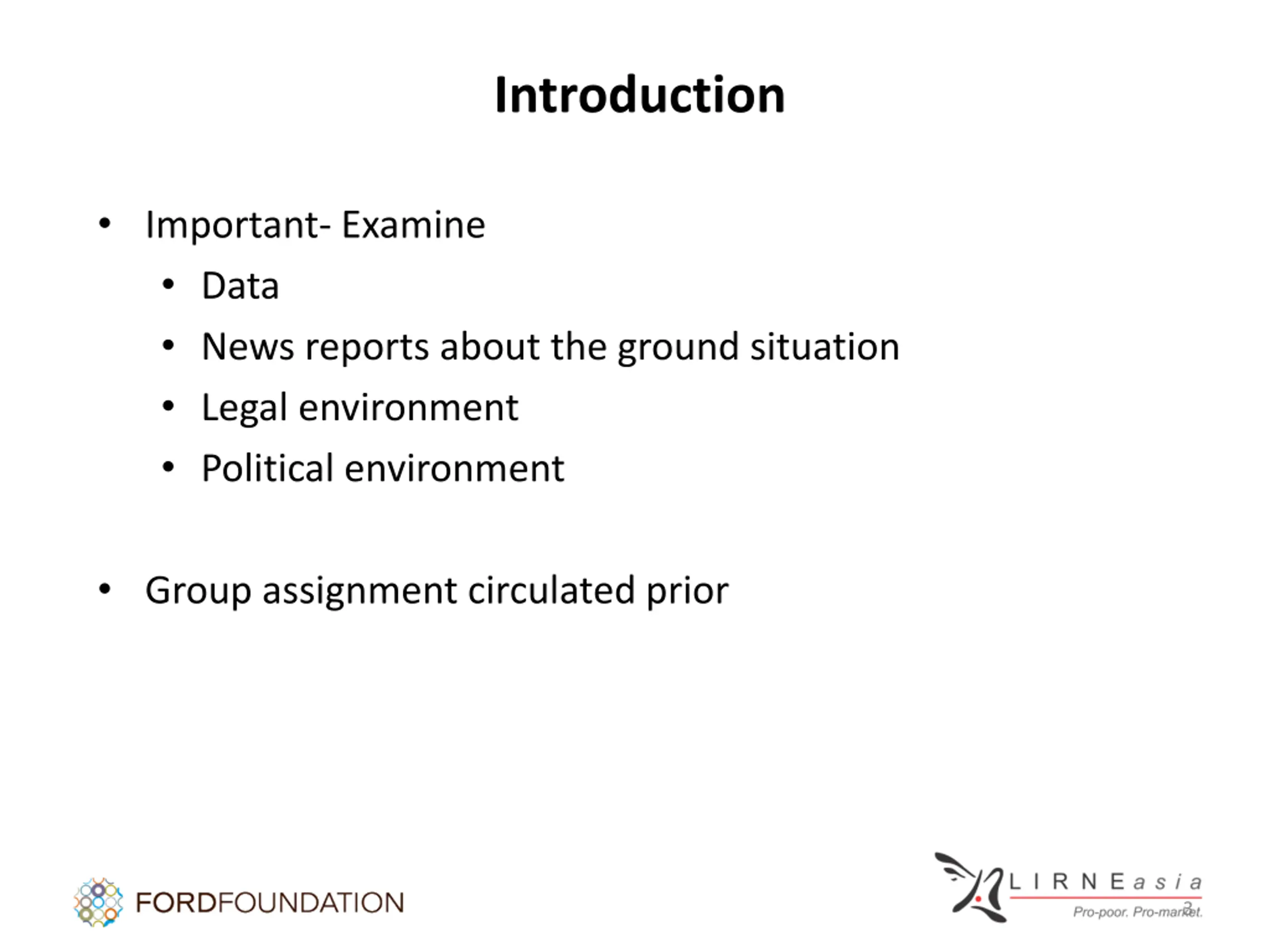- Introduction Important- Examine Data News reports about the ground situation Legal environment Political environment Group assignment circulated prior 3