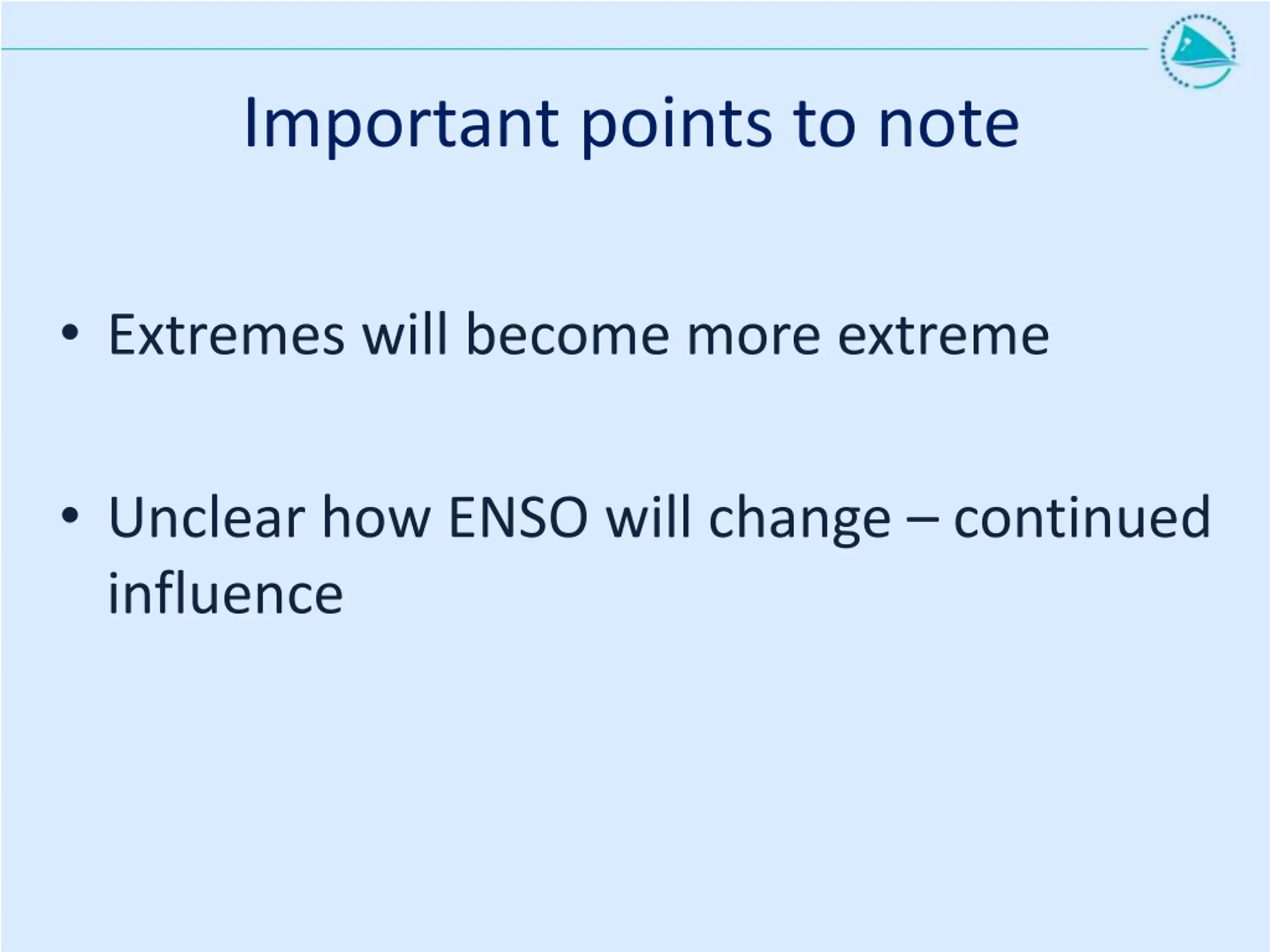 Important points to note Extremes will become more extreme Unclear how ENSO will change continued influence