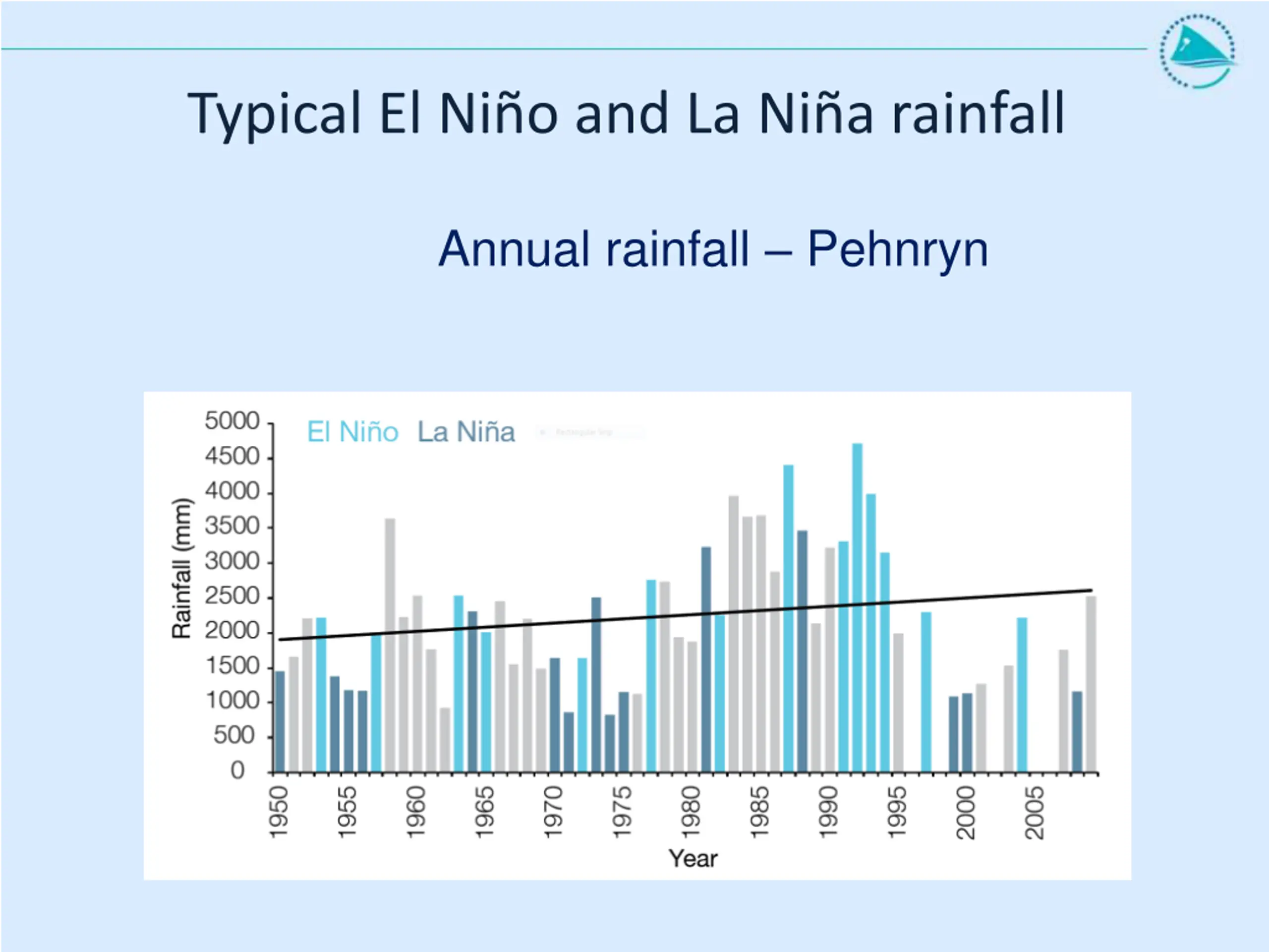 Typical El Nio and La Nia rainfall Annual rainfall Pehnryn
