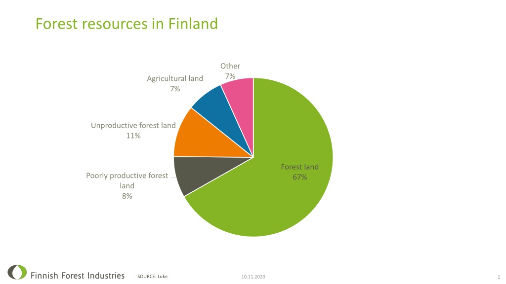 Forest resources in Finland Other 7% Agricultural land 7% Unproductive forest land 11% Forest land 67% Poorly productive forest land 8% SOURCE: Luke 10.11.2020 1