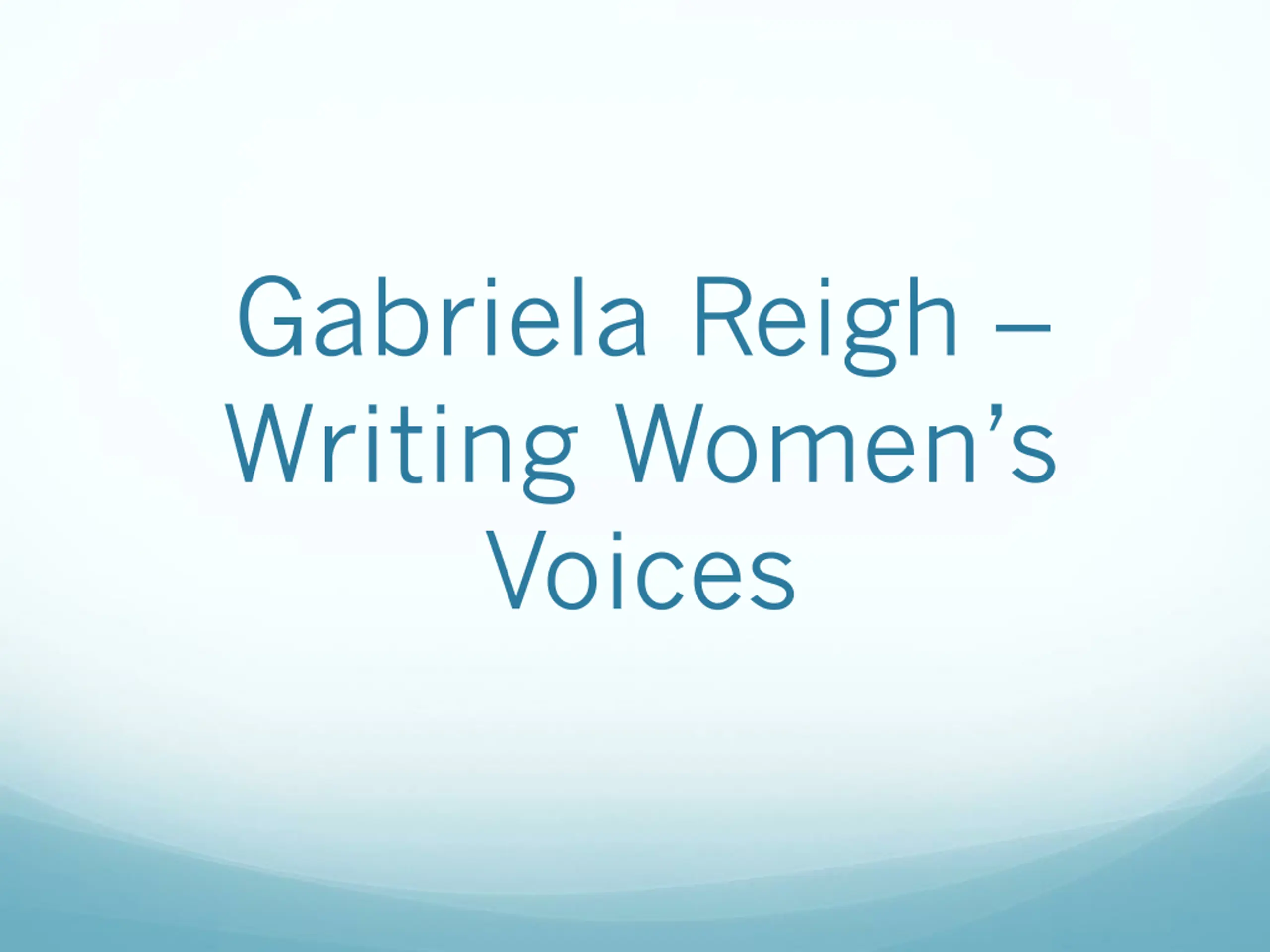 Gabriela Reigh Writing Women s Voices