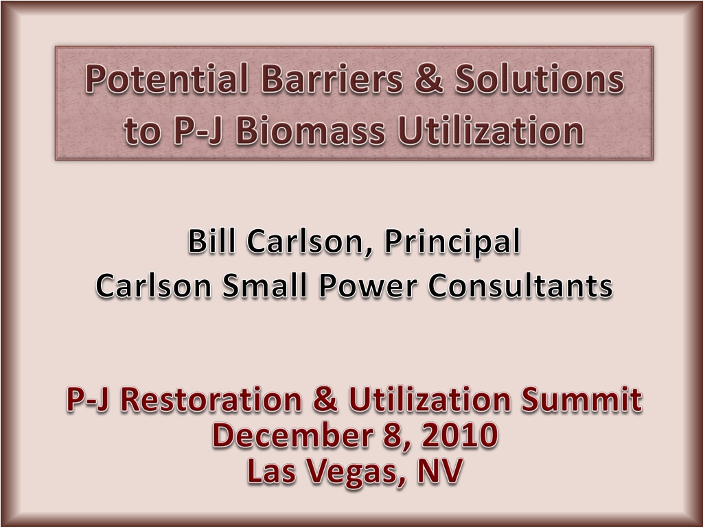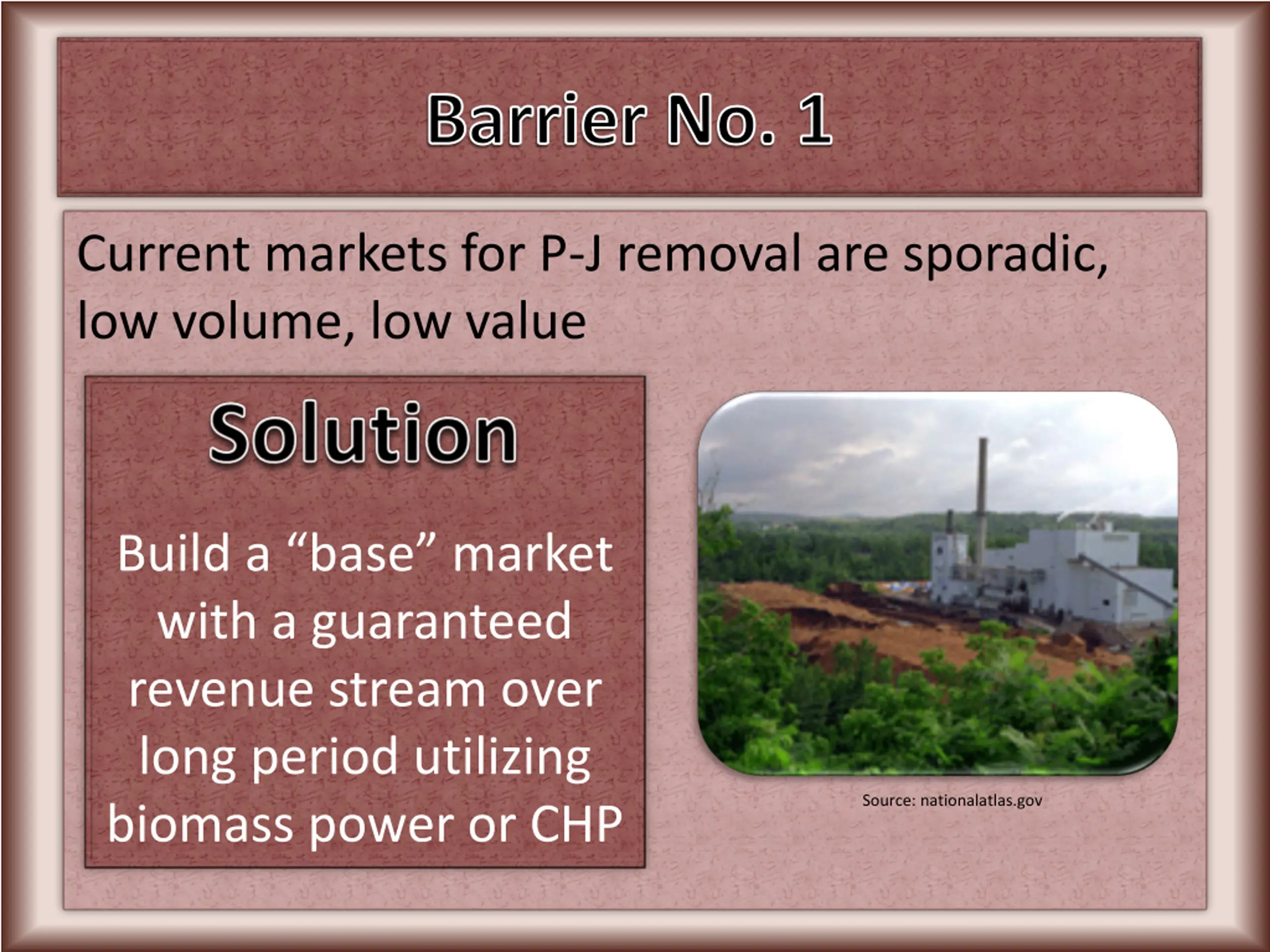 Barrier No. 1 Current markets for P-J removal are sporadic, low volume, low value Build a base market with a guaranteed revenue stream over long period utilizing biomass power or CHP Source: nationalatlas.gov