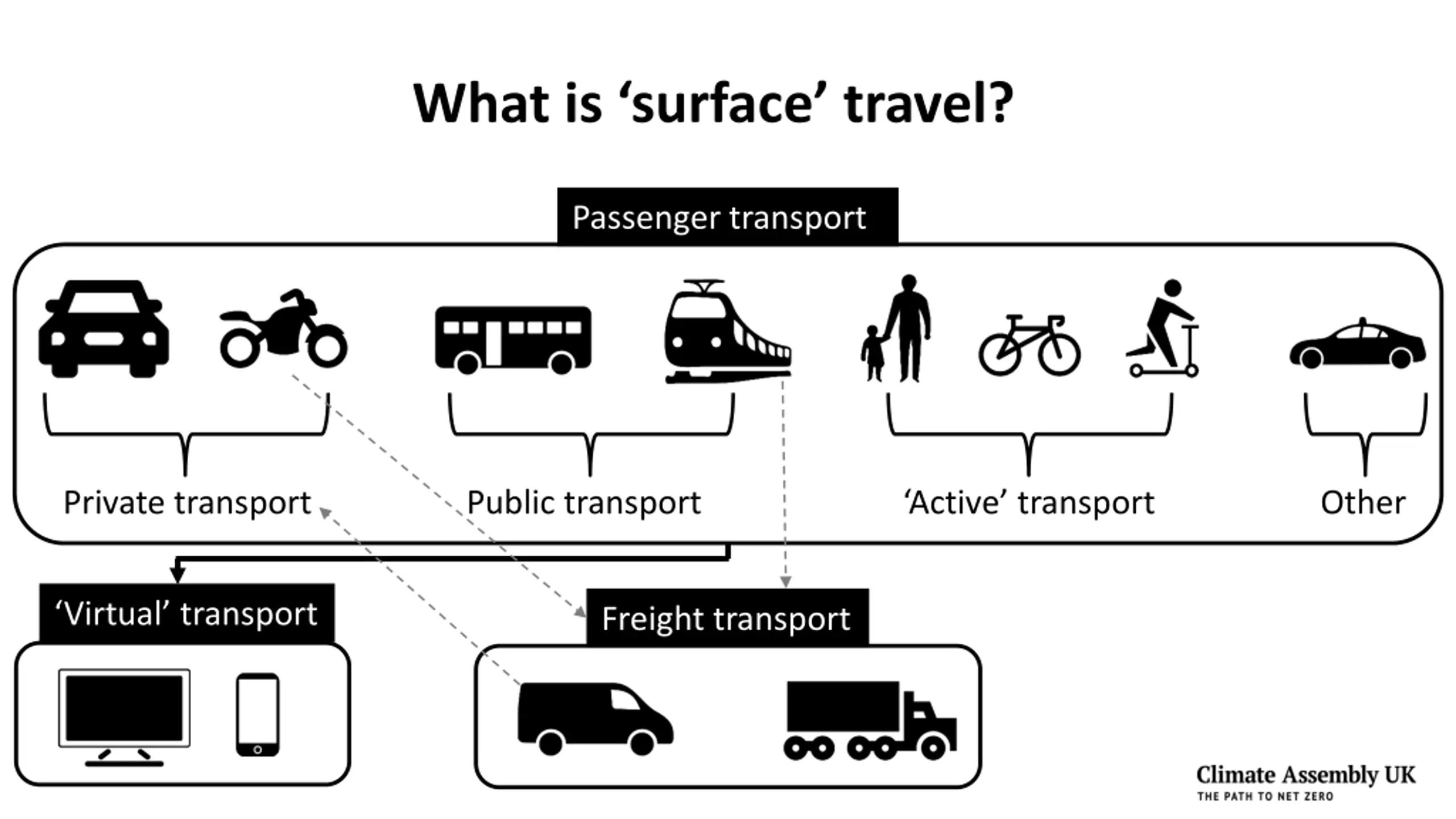 What is surface travel? Passenger transport Private transport Public transport Active transport Other Virtual transport Freight transport