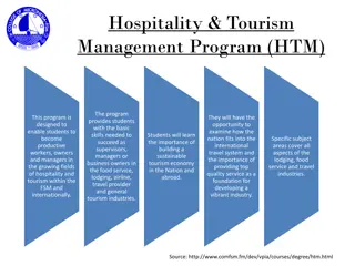 Tourism involves traveling to natural areas to study, admire, and enjoy scenery, wildlife, and cultural aspects. The growth of tourism in India has been significant with various initiatives to attract more foreign tourists and promote eco-tourism. Medical tourism is also on the rise, with travelers seeking healthcare services across borders. Explore the opportunities and initiatives driving the tourism industry forward.