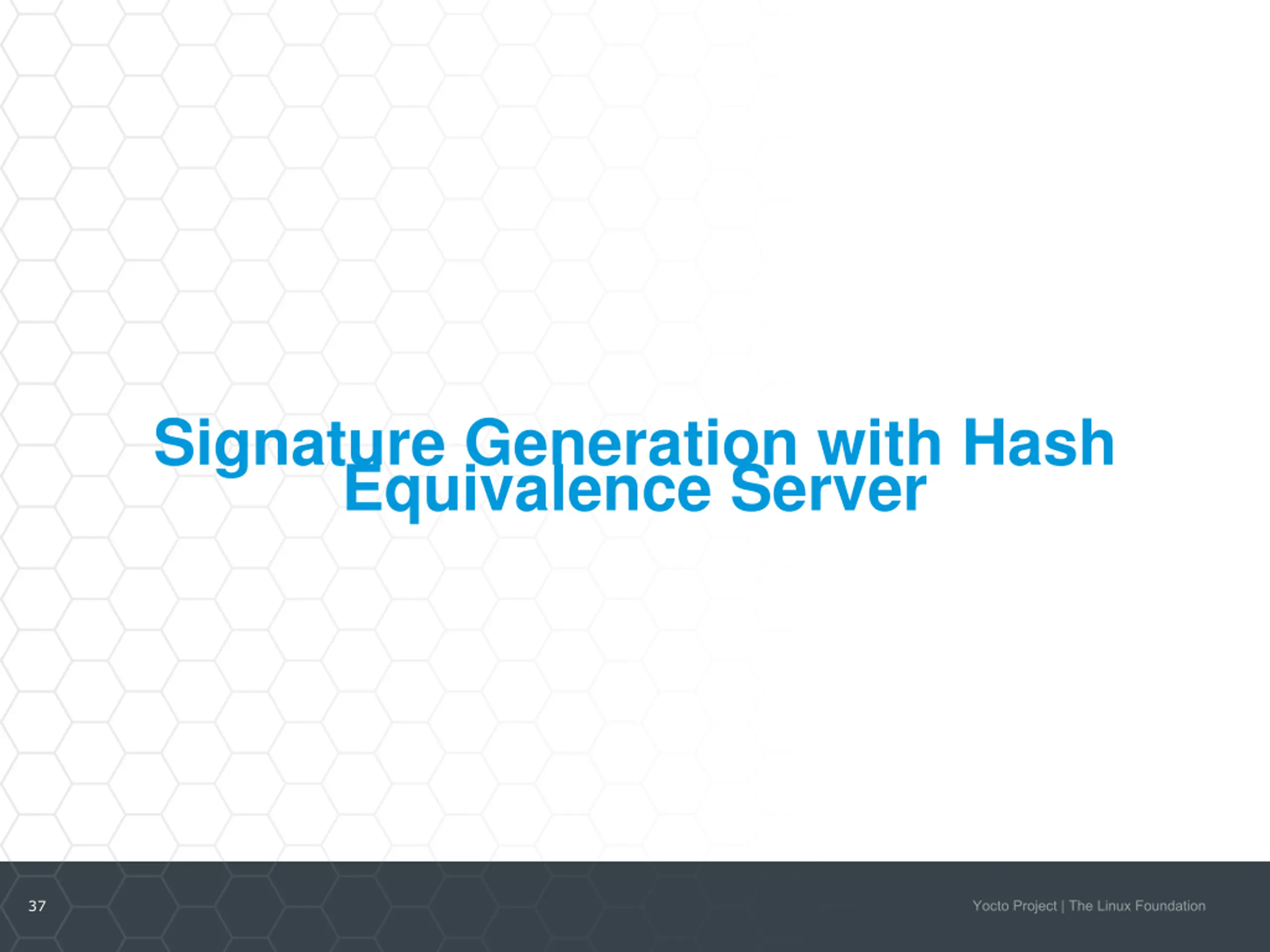 Runqueue Execution with Hash Equivalence Server A:do_configure A:do_populate_sysroot A:do_populate_sysroot:222 taskhash: aaa unihash: aaa taskhash: bbb unihash: 222 Hash server outhash 123 = taskhash 222 outhash 123 = taskhash bbb B:do_populate_sysroot_setscene B:do_populate_sysroot:444 taskhash: 444 unihash: 444 36