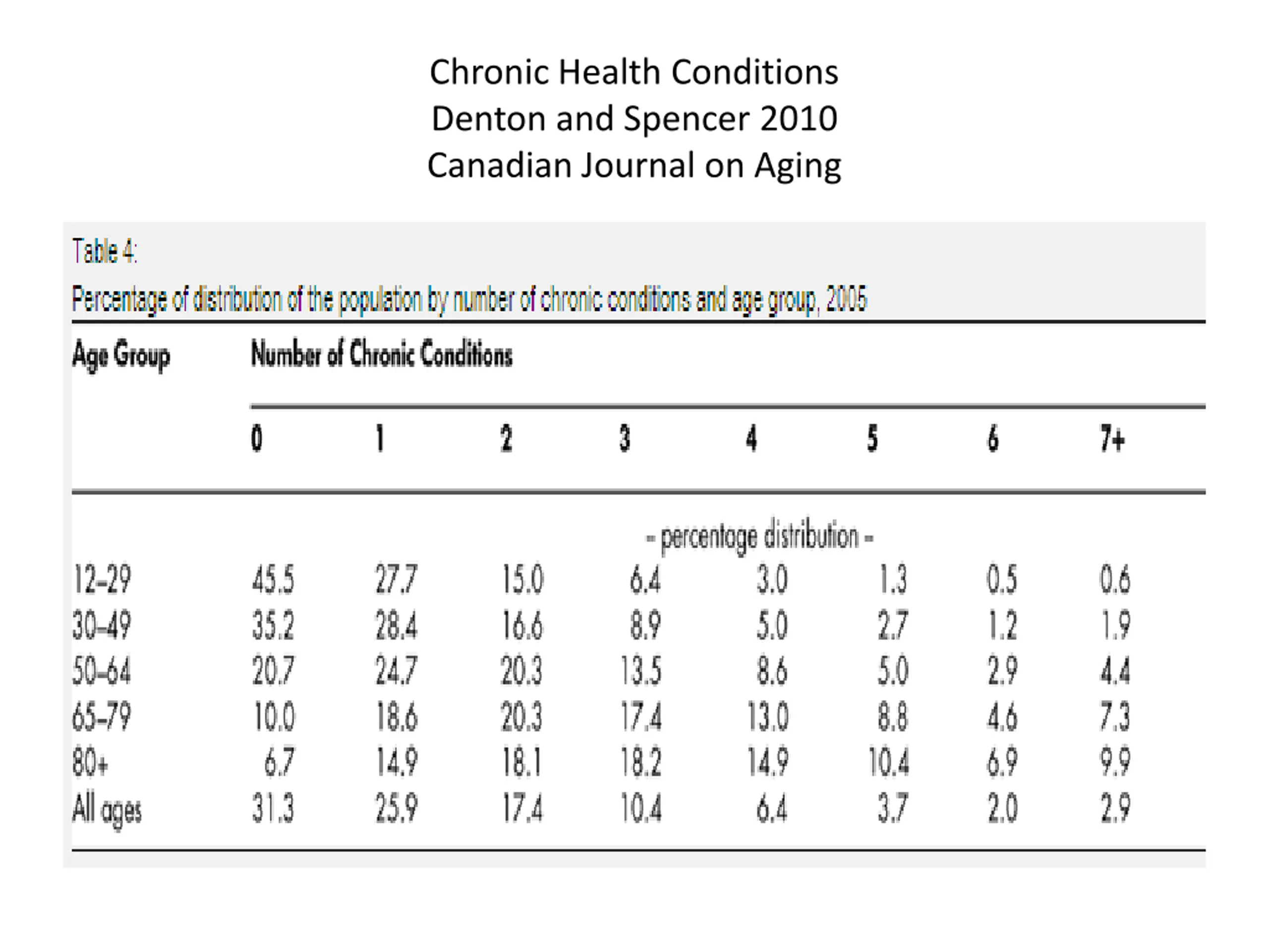 Chronic Health Conditions Denton and Spencer 2010 Canadian Journal on Aging