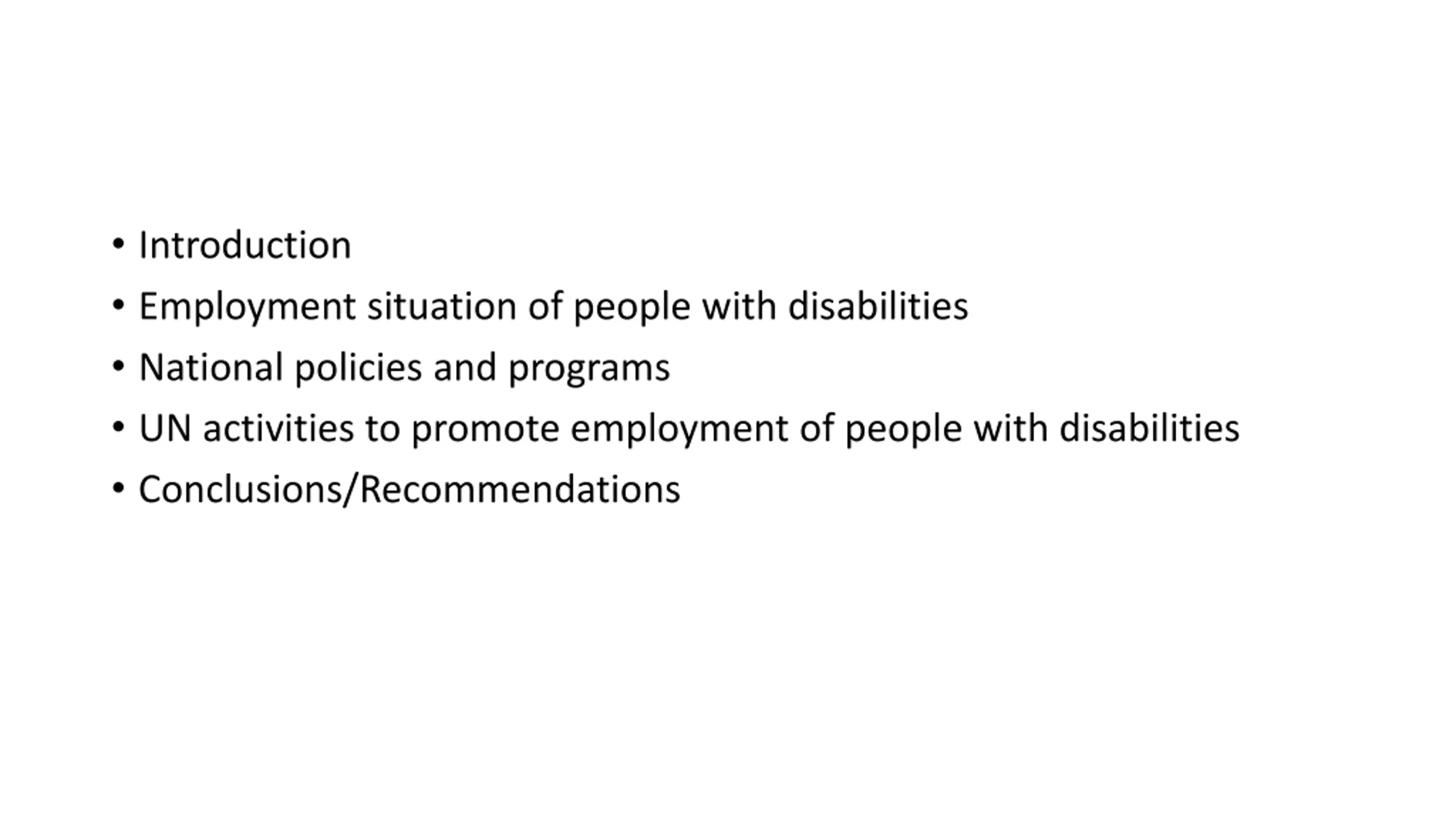 Introduction Employment situation of people with disabilities National policies and programs UN activities to promote employment of people with disabilities Conclusions/Recommendations