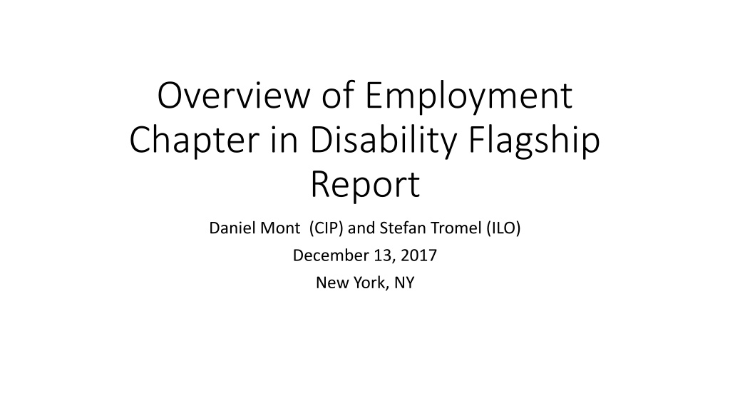 Overview of Employment Chapter in Disability Flagship Report Daniel Mont (CIP) and Stefan Tromel (ILO) December 13, 2017 New York, NY