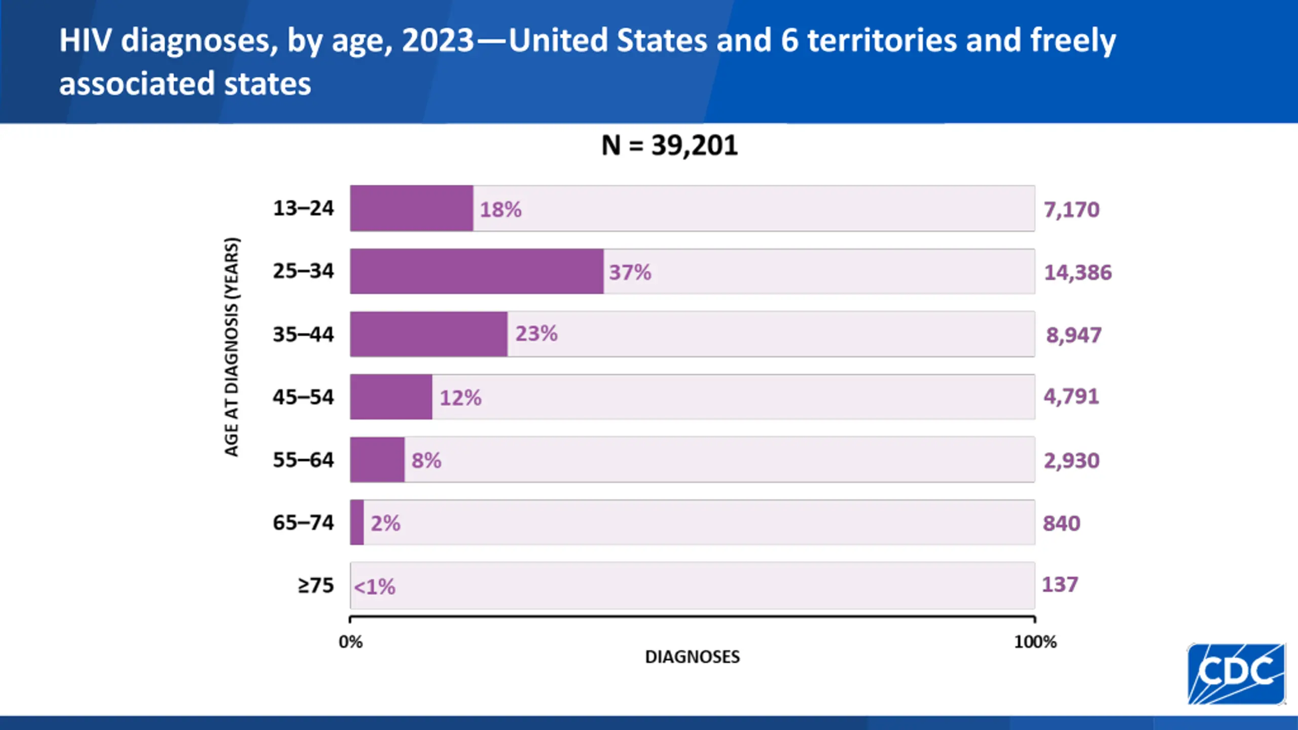 HIV diagnoses, by age, 2023United States and 6 territories and freely associated states