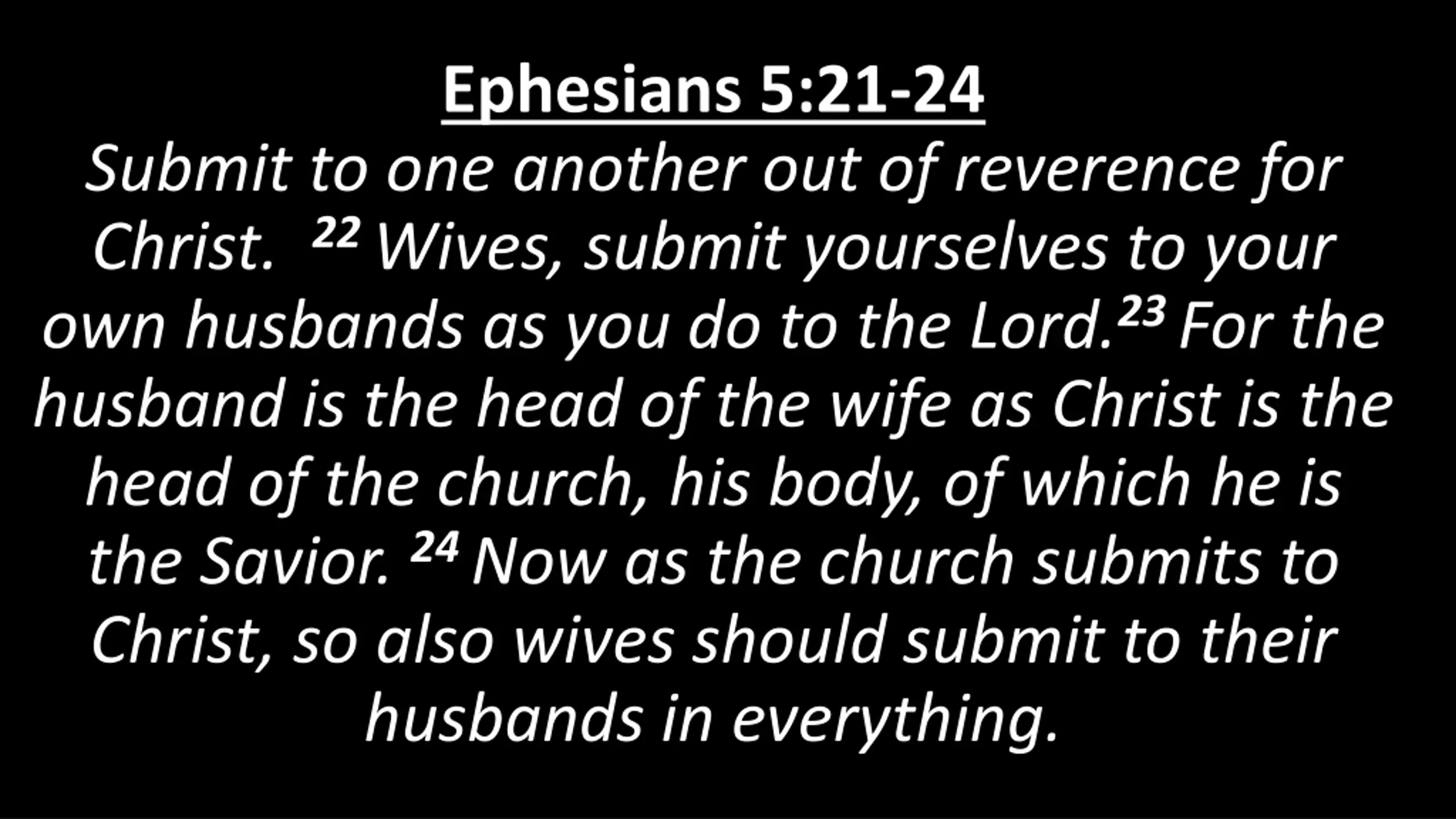 Ephesians 5:21-24 Submit to one another out of reverence for Christ. 22Wives, submit yourselves to your own husbands as you do to the Lord.23For the husband is the head of the wife as Christ is the head of the church, his body, of which he is the Savior.24Now as the church submits to Christ, so also wives should submit to their husbands in everything.