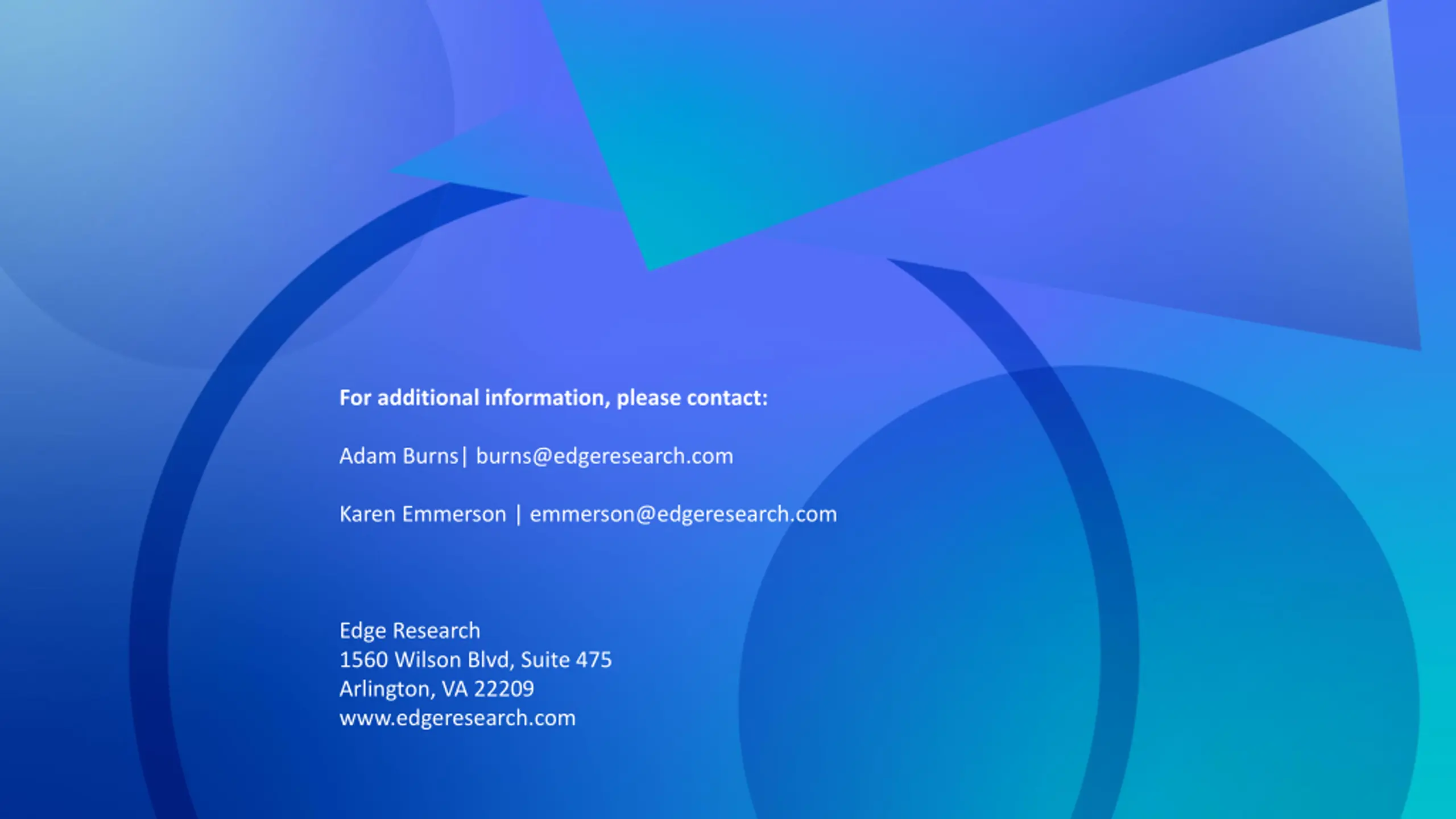 For additional information, please contact: Adam Burns| burns@edgeresearch.com Karen Emmerson | emmerson@edgeresearch.com Edge Research 1560 Wilson Blvd, Suite 475 Arlington, VA 22209 www.edgeresearch.com