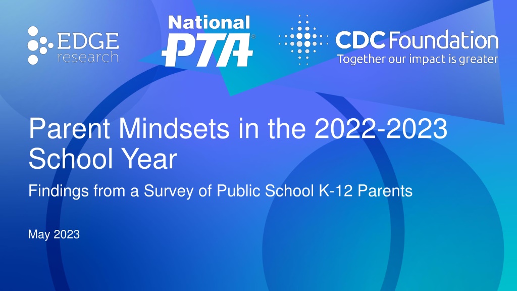 Explore findings from a survey of K-12 public school parents regarding their mindsets in the 2022-2023 academic year. The research delves into parental concerns, support for children's emotional and mental health, interest in summer programs, and expectations from schools in creating safe learning environments.
