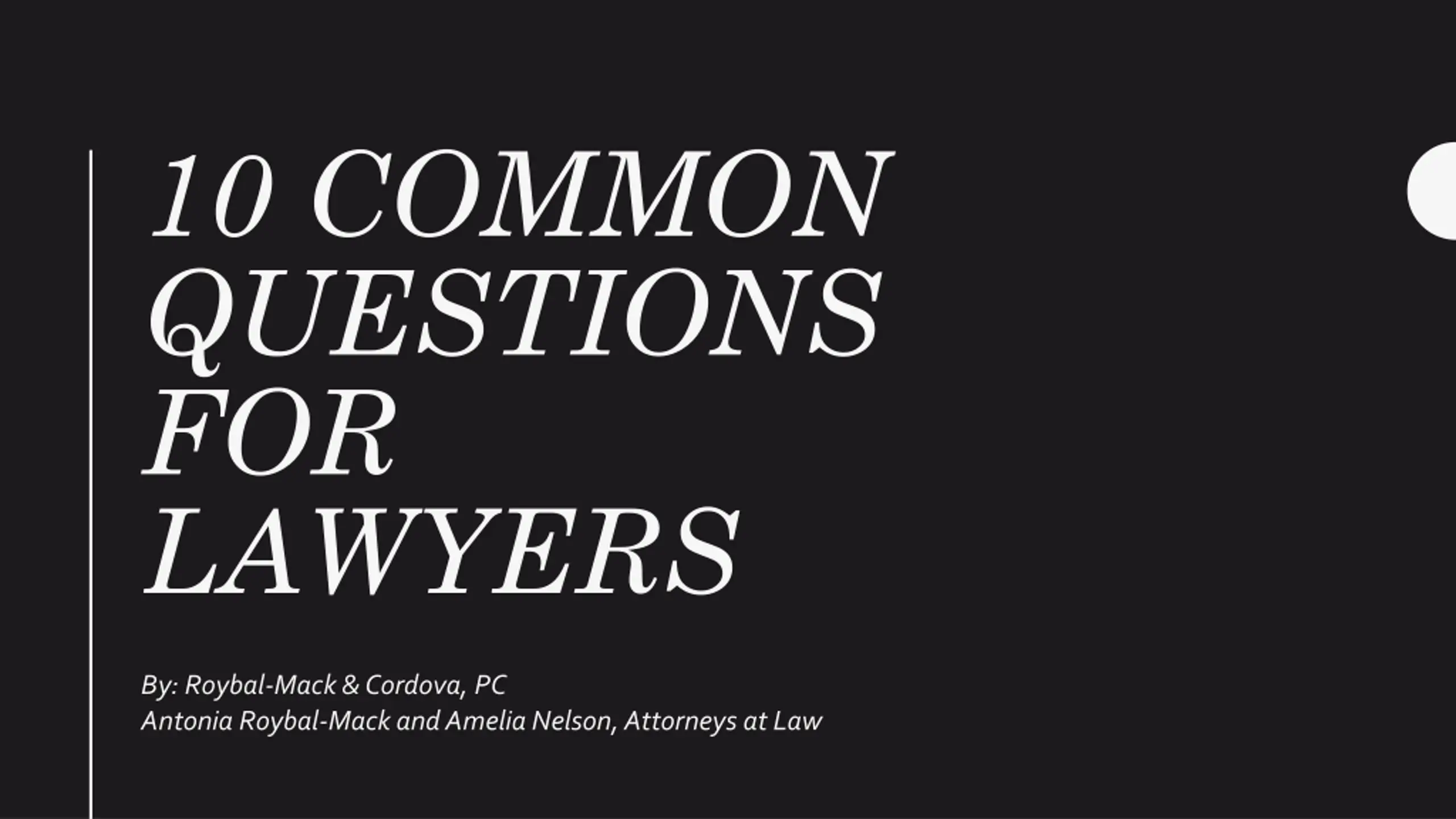 10 COMMON QUESTIONS FOR LAWYERS By: Roybal-Mack & Cordova, PC Antonia Roybal-Mack and Amelia Nelson, Attorneys at Law