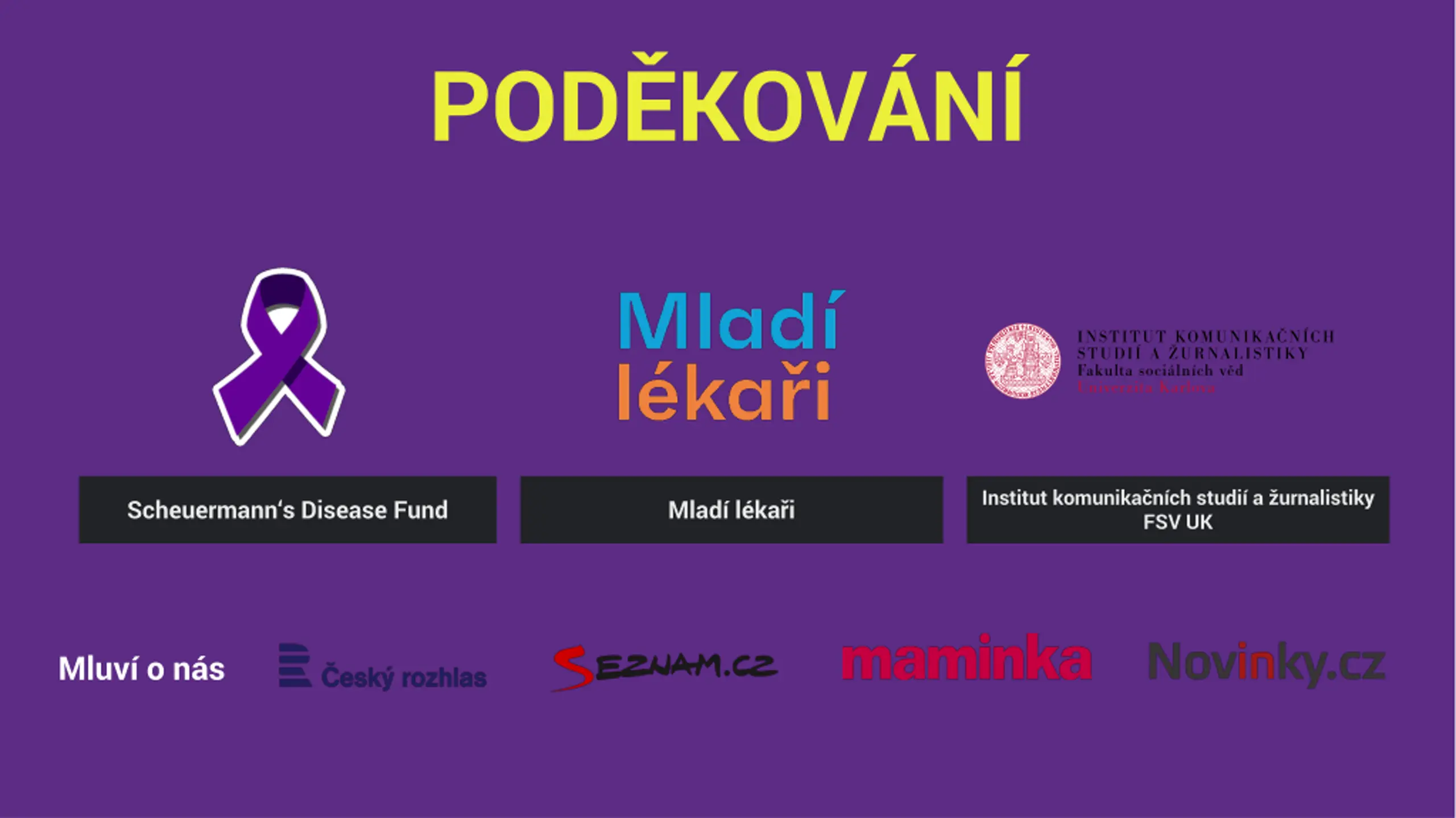 PODKOVN Institut komunika n ch studi a urnalistiky FSV UK Scheuermann s Disease Fund Mlad l ka i Mluv o n s