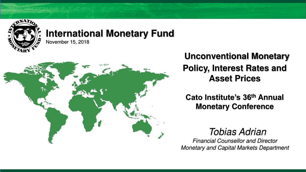 International Monetary Fund November 15, 2018 Unconventional Monetary Policy, Interest Rates and Asset Prices Cato Institute s 36th Annual Monetary Conference Tobias Adrian Financial Counsellor and Director Monetary and Capital Markets Department