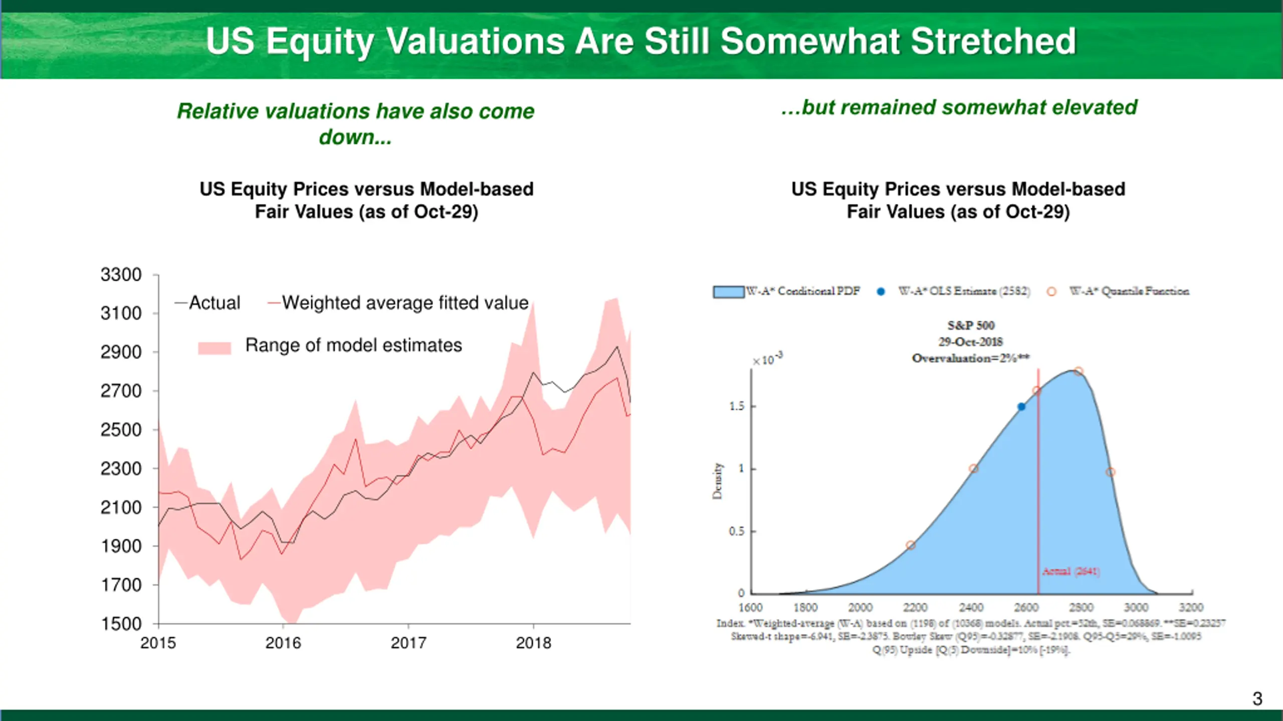 US Equity Valuations Are Still Somewhat Stretched but remained somewhat elevated Relative valuations have also come down... US Equity Prices versus Model-based Fair Values (as of Oct-29) US Equity Prices versus Model-based Fair Values (as of Oct-29) 3300 Actual Weighted average fitted value 3100 Range of model estimates 2900 2700 2500 2300 2100 1900 1700 1500 2015 2016 2017 2018 3