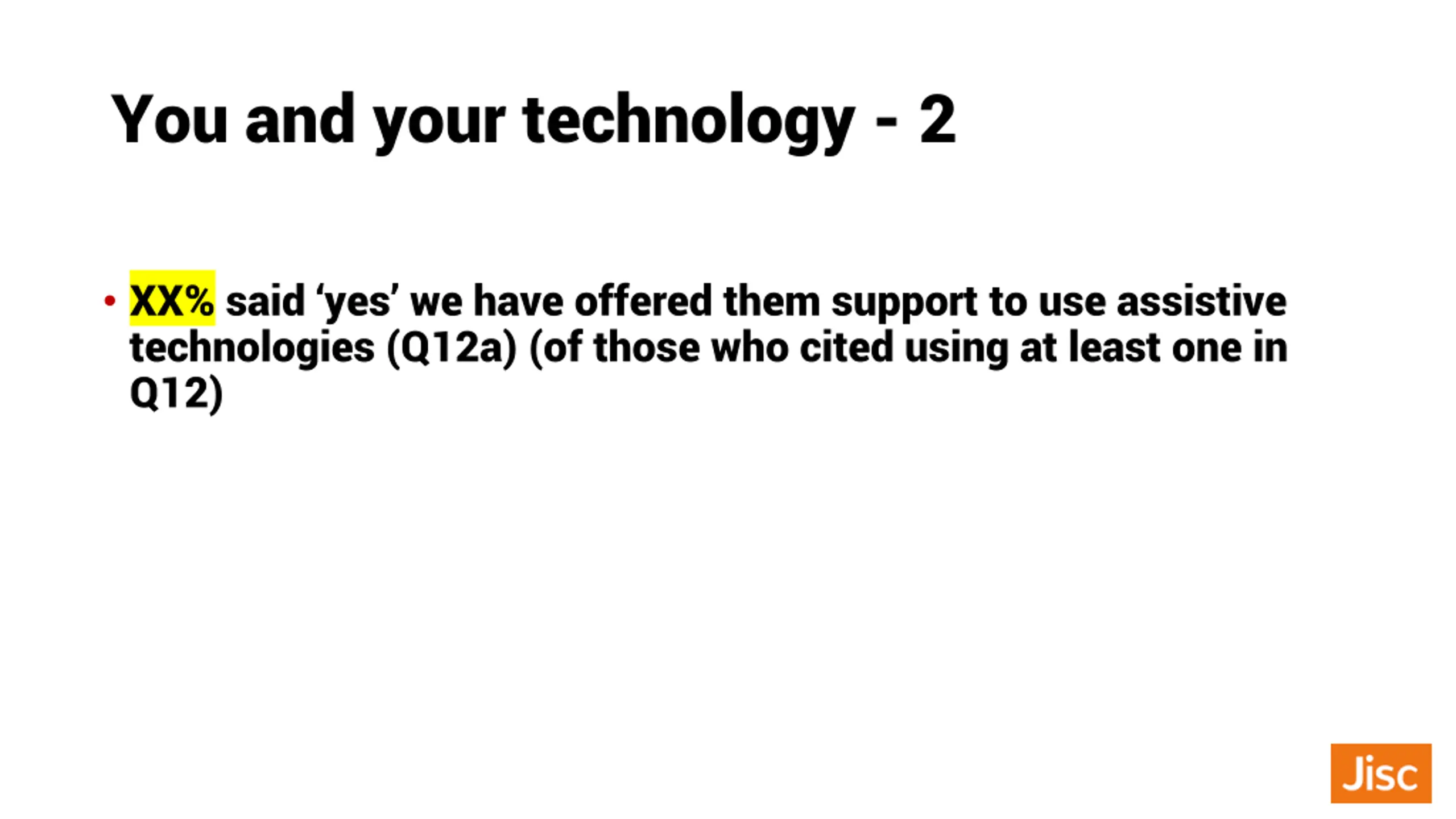 You and your technology - 2 XX% said yes we have offered them support to use assistive technologies (Q12a) (of those who cited using at least one in Q12)