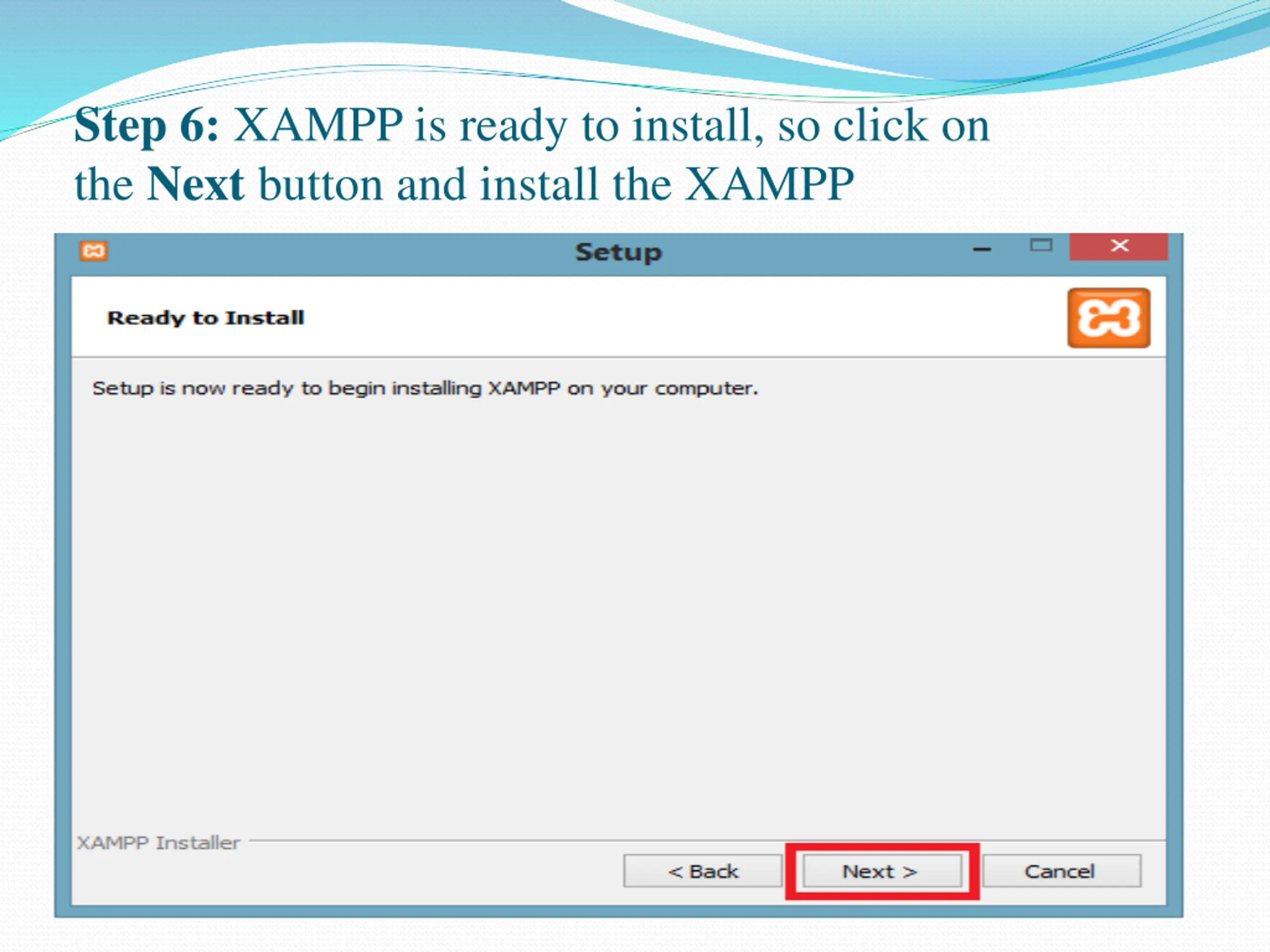 Step 6: XAMPP is ready to install, so click on the Next button and install the XAMPP