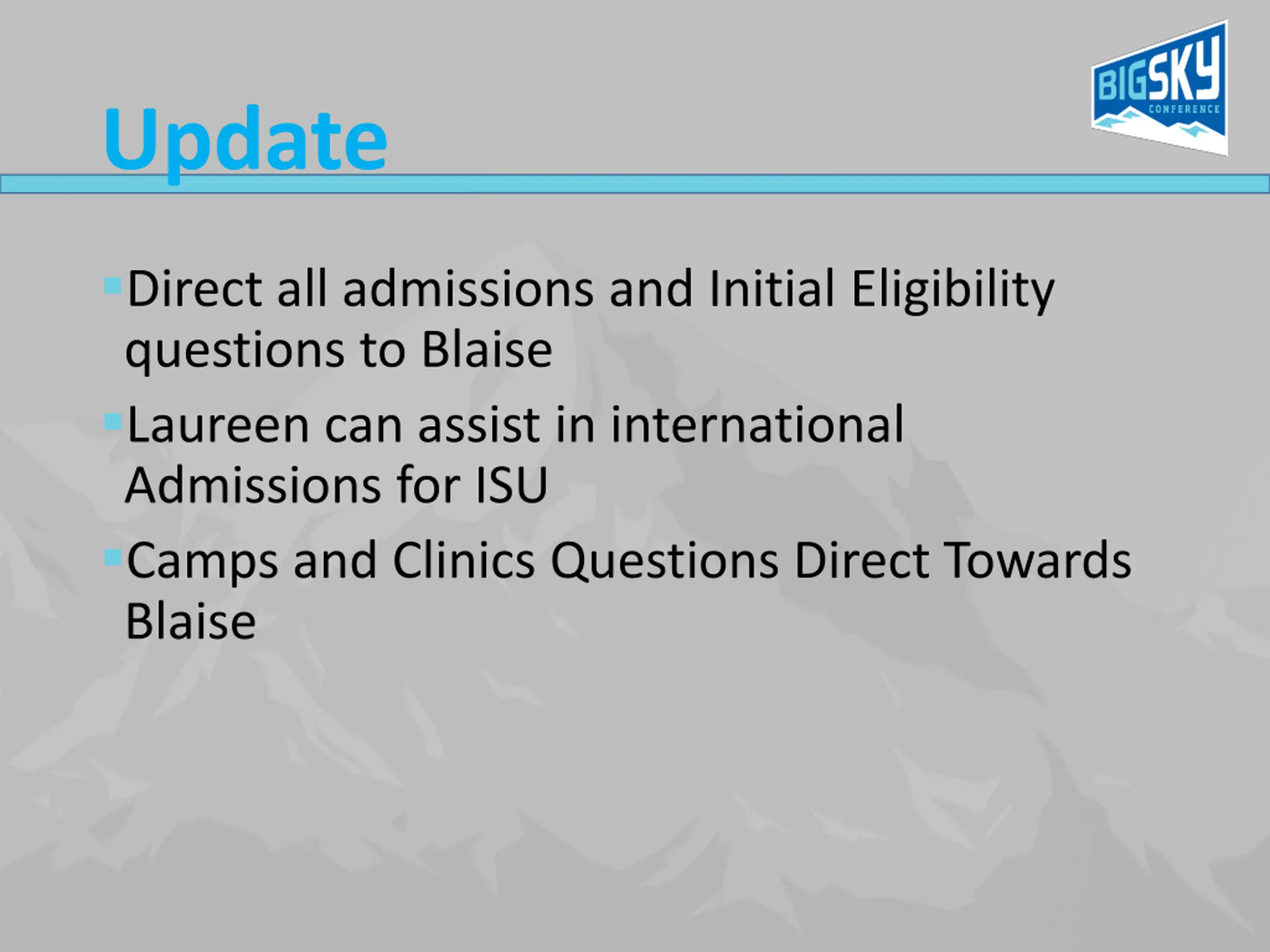 Update Direct all admissions and Initial Eligibility questions to Blaise Laureen can assist in international Admissions for ISU Camps and Clinics Questions Direct Towards Blaise