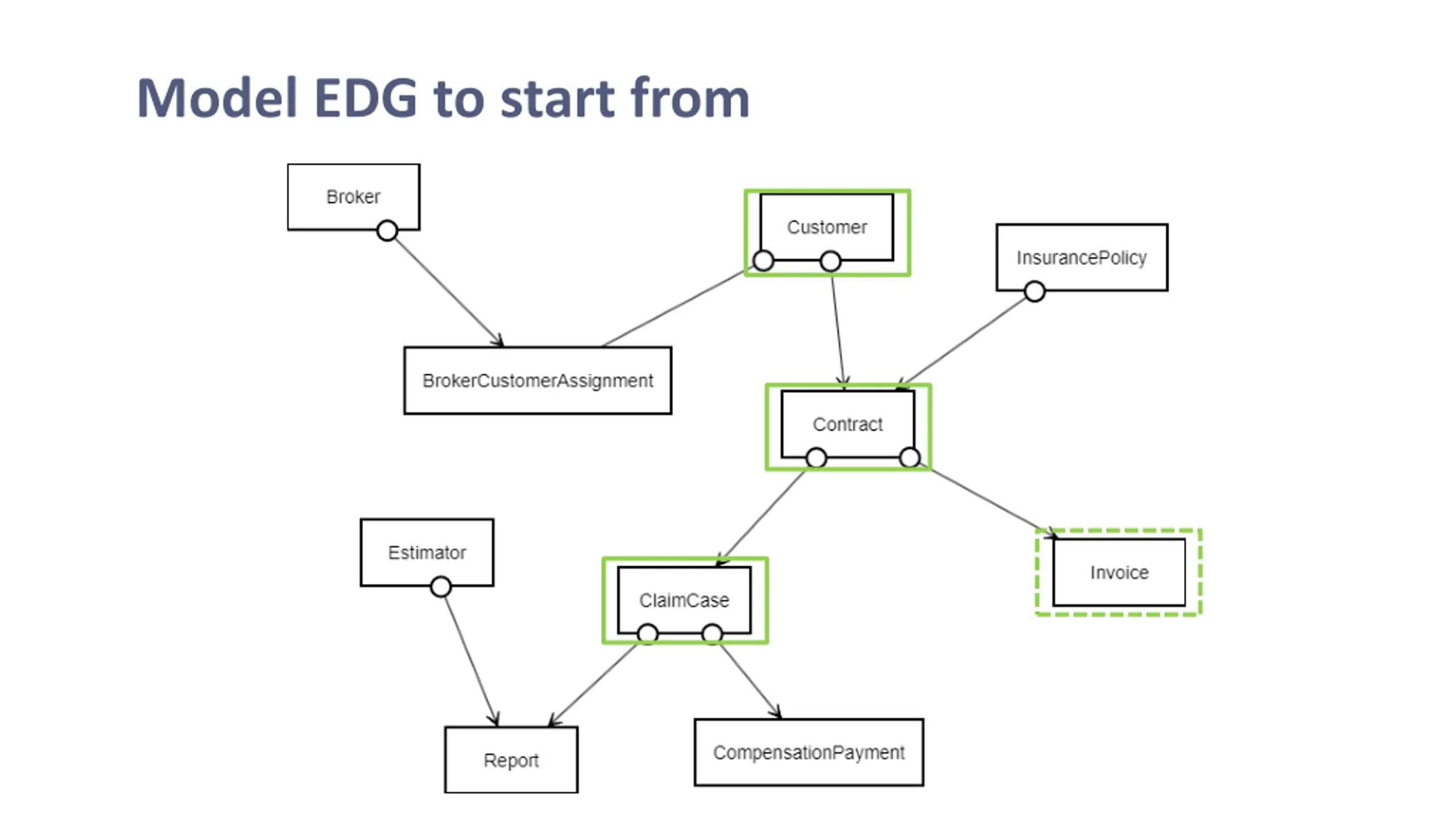 LifeCycle of Customer (Student Solution) Such cycle mimics the "maximum one" broker cardinality. It is not in conflict with EDG, but unnecessary. Moreover, it would be in conflict with EDG if cardinality is updated to maximum many. ==> not a good idea
