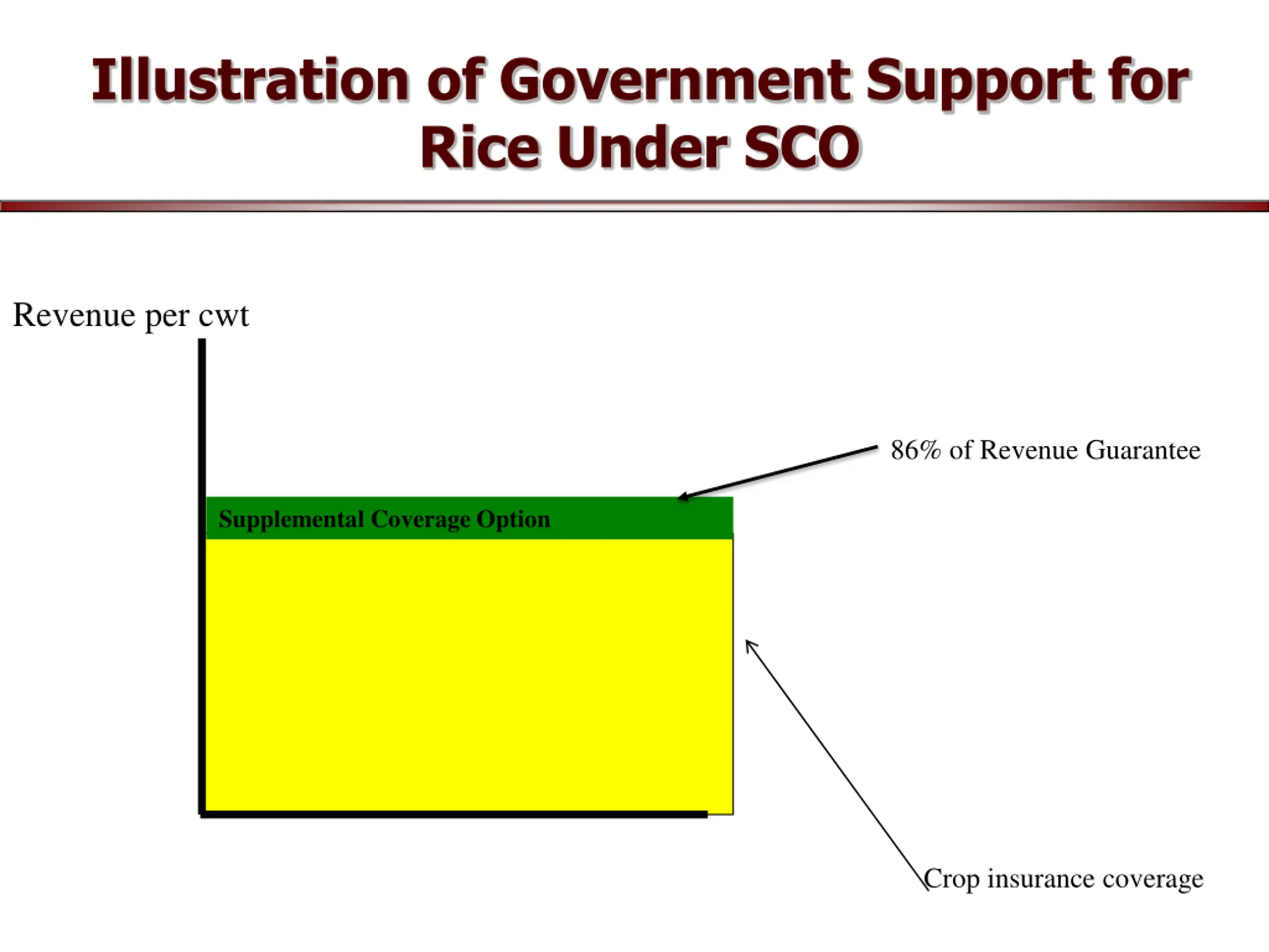 Illustration of Government Support for Rice Under SCO Revenue per cwt 86% of Revenue Guarantee Supplemental Coverage Option Crop insurance coverage