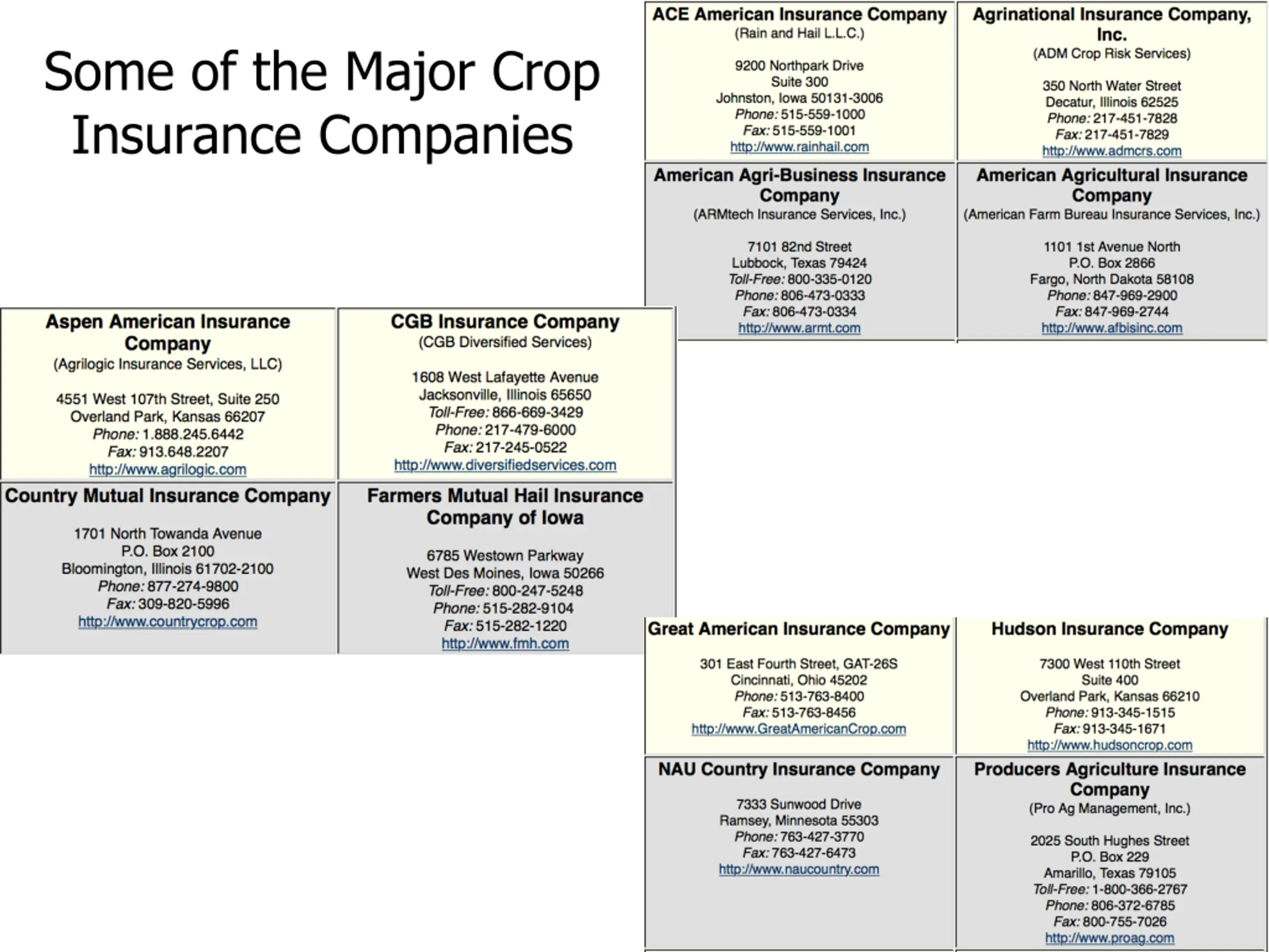 Some of the Major Crop Insurance Companies