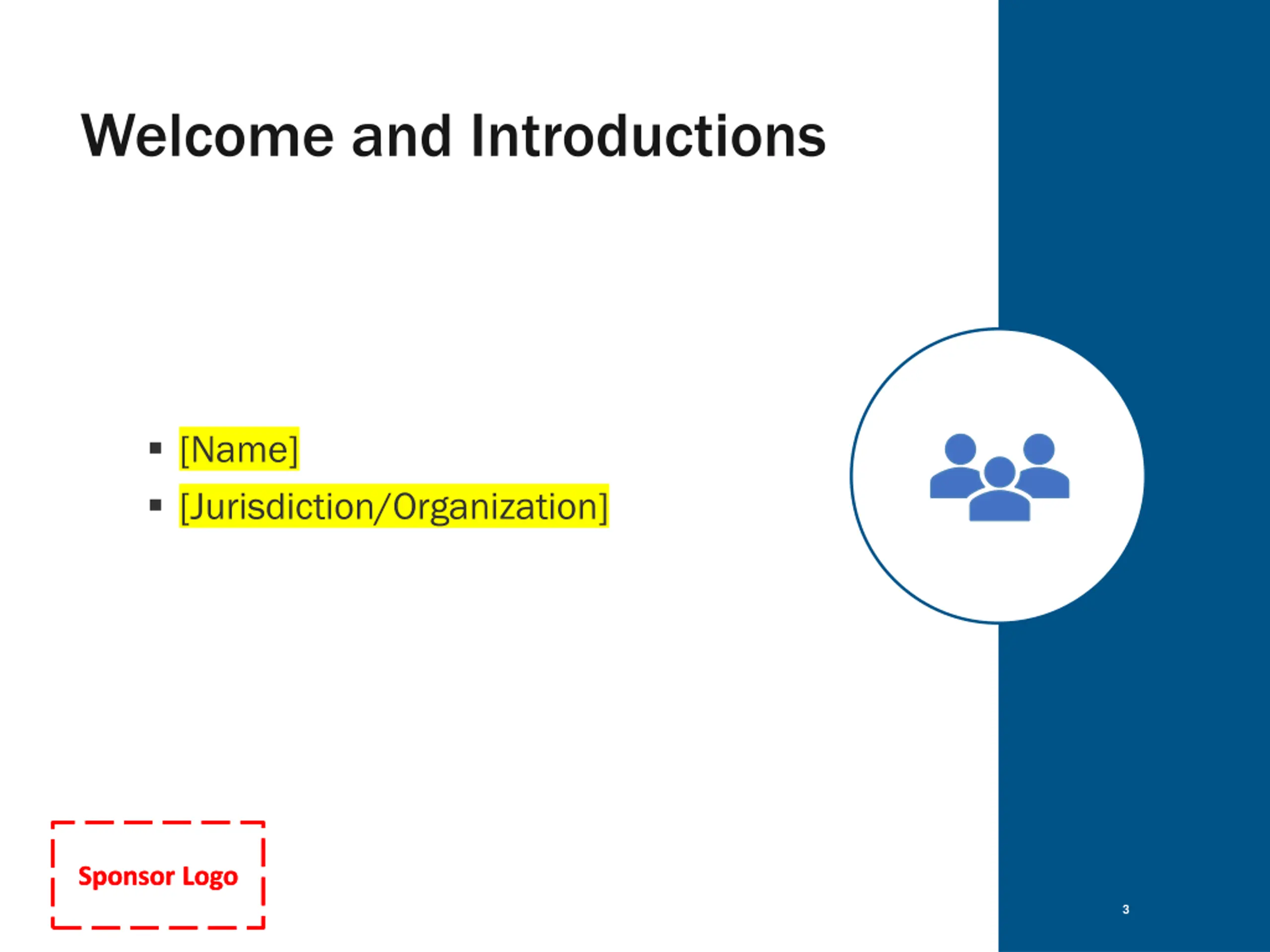 Welcome and Introductions [Name] [Jurisdiction/Organization] Sponsor Logo Sponsor Logo 3