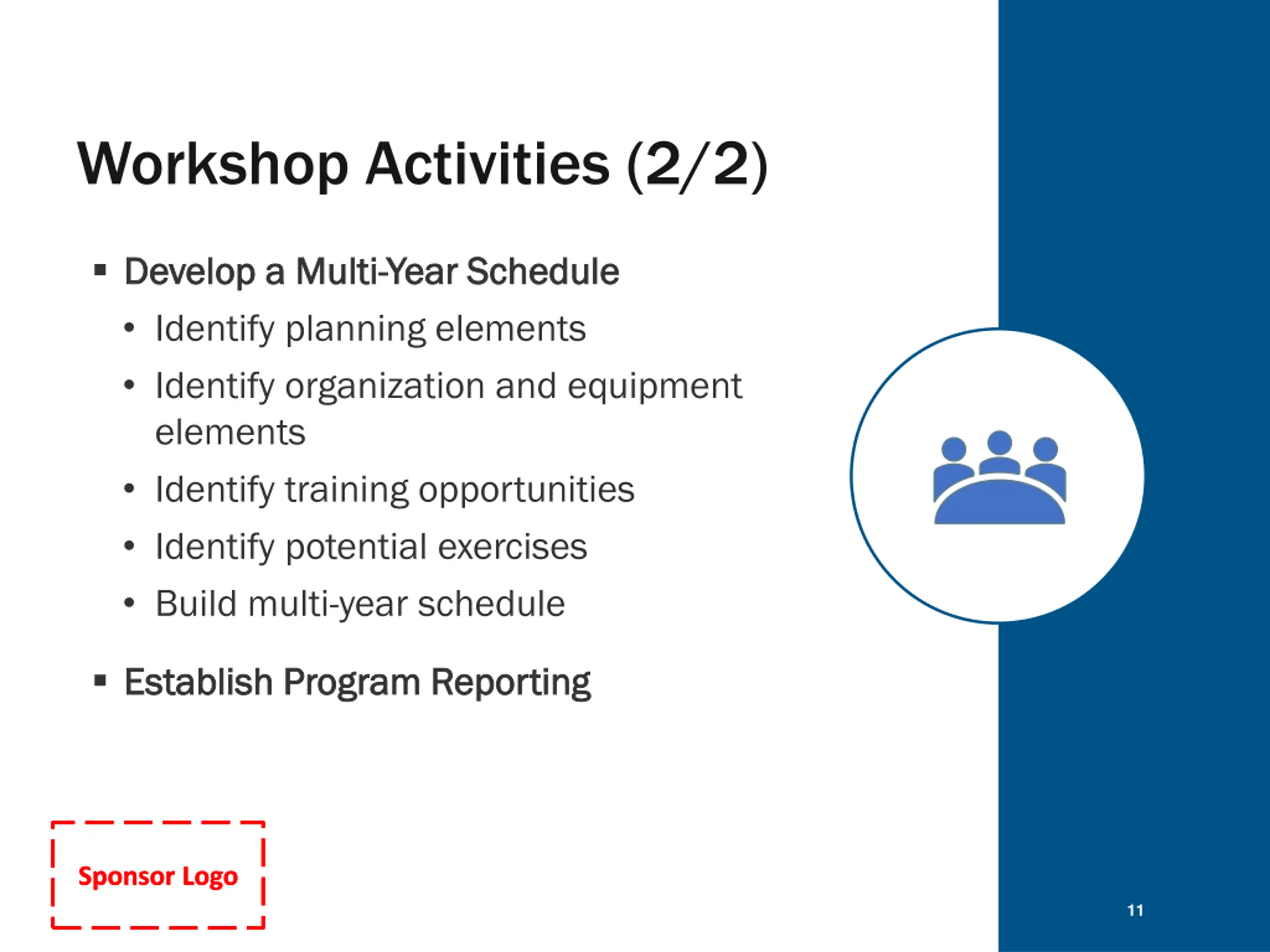 Workshop Activities (2/2) Develop a Multi Develop a Multi- -Year Schedule Identify planning elements Identify organization and equipment elements Identify training opportunities Identify potential exercises Build multi-year schedule Year Schedule Establish Program Reporting Establish Program Reporting Sponsor Logo Sponsor Logo 11