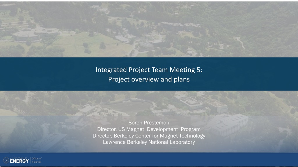 Integrated Project Team Meeting 5: Project overview and plans Soren Prestemon Director, US Magnet Development Program Director, Berkeley Center for Magnet Technology Lawrence Berkeley National Laboratory