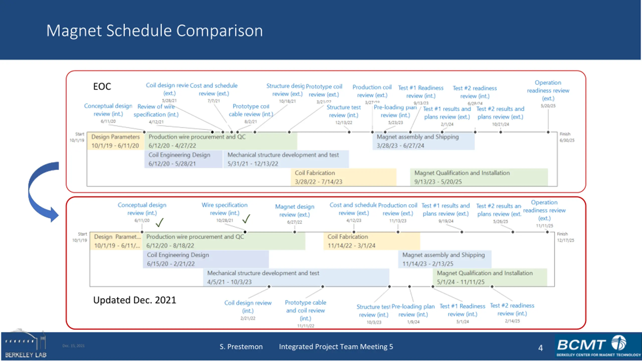 Magnet Schedule Comparison EOC Updated Dec. 2021 S. Prestemon Integrated Project Team Meeting 5 4 Dec. 15, 2021
