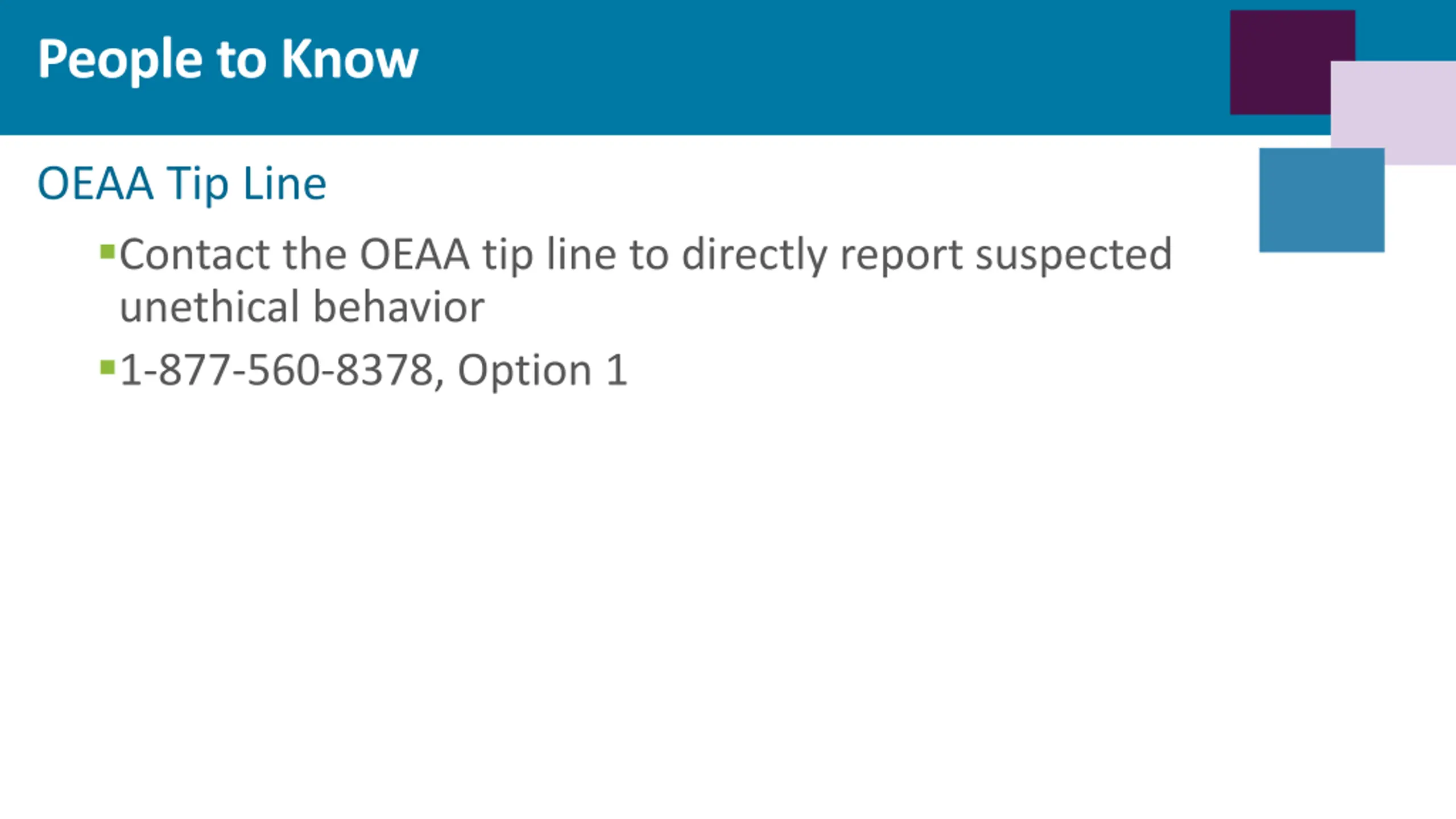People to Know 4 OEAA Tip Line Contact the OEAA tip line to directly report suspected unethical behavior 1-877-560-8378, Option 1