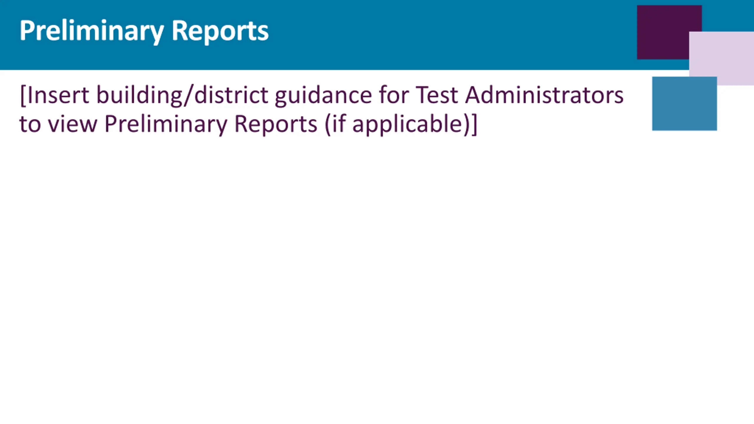 Preliminary Reports [Insert building/district guidance for Test Administrators to view Preliminary Reports (if applicable)]