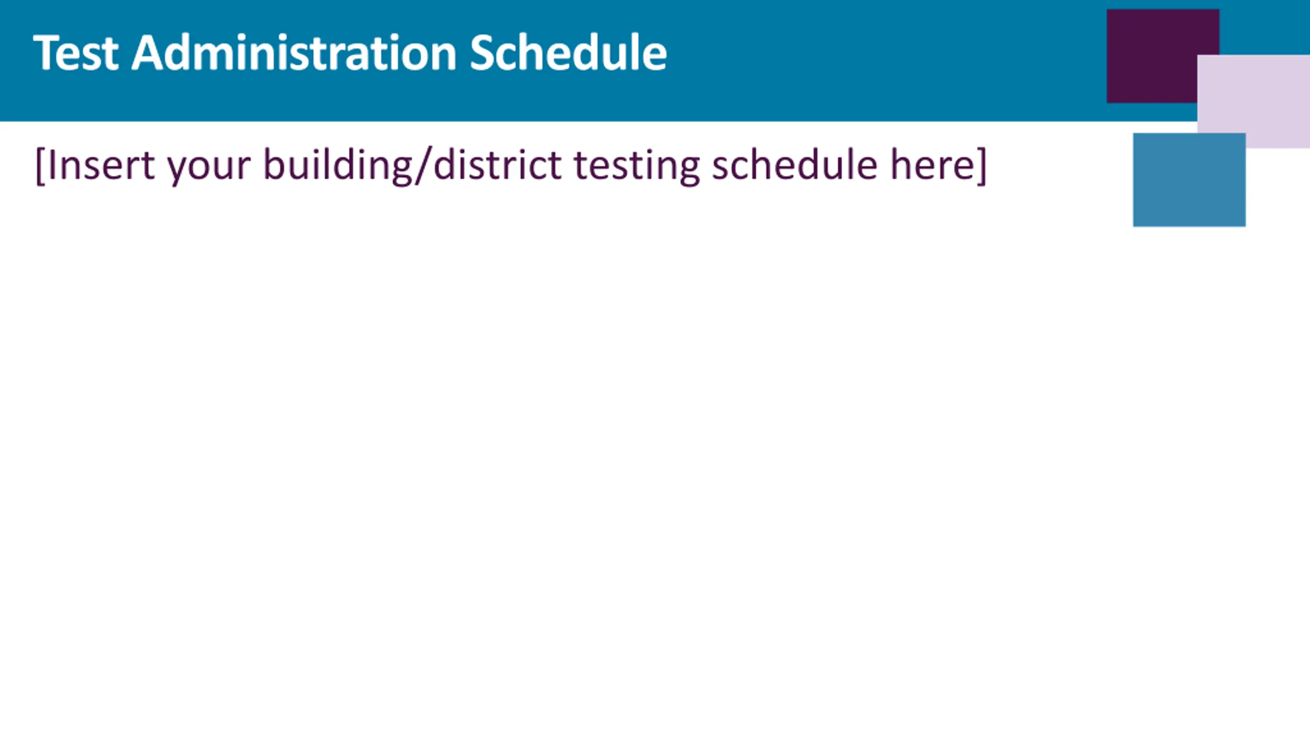 Test Administration Schedule [Insert your building/district testing schedule here]