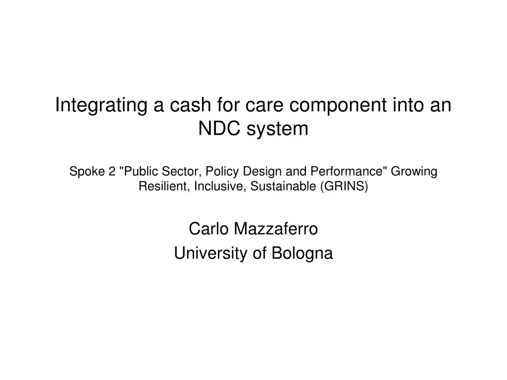 Integrating a cash for care component into an NDC system Spoke 2 "Public Sector, Policy Design and Performance" Growing Resilient, Inclusive, Sustainable (GRINS) Carlo Mazzaferro University of Bologna