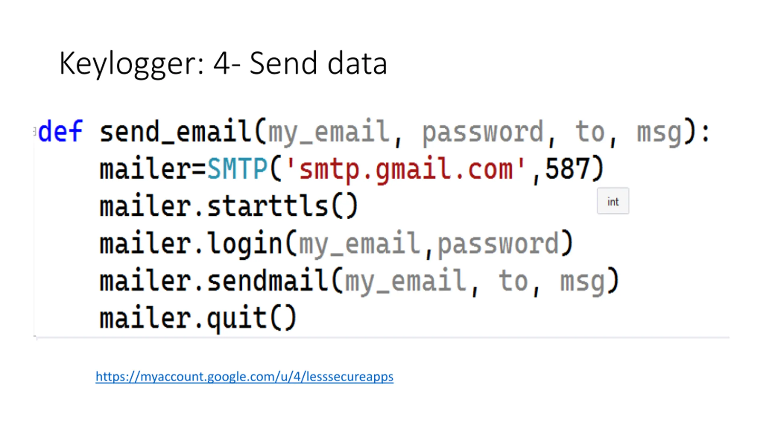 Keylogger: 4- Send data https://myaccount.google.com/u/4/lesssecureapps
