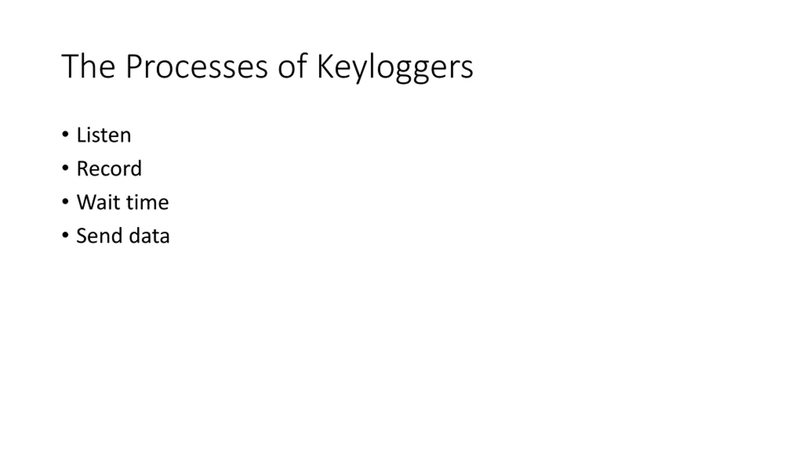 The Processes of Keyloggers Listen Record Wait time Send data