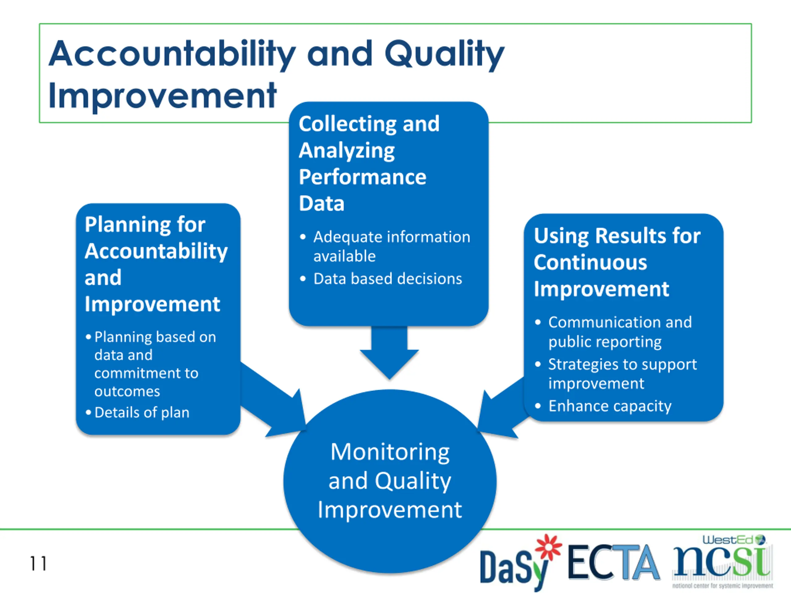 Accountability and Quality Improvement Collecting and Analyzing Performance Data Planning for Accountability and Improvement Using Results for Continuous Improvement Adequate information available Data based decisions Communication and public reporting Strategies to support improvement Enhance capacity Planning based on data and commitment to outcomes Details of plan Monitoring and Quality Improvement 11