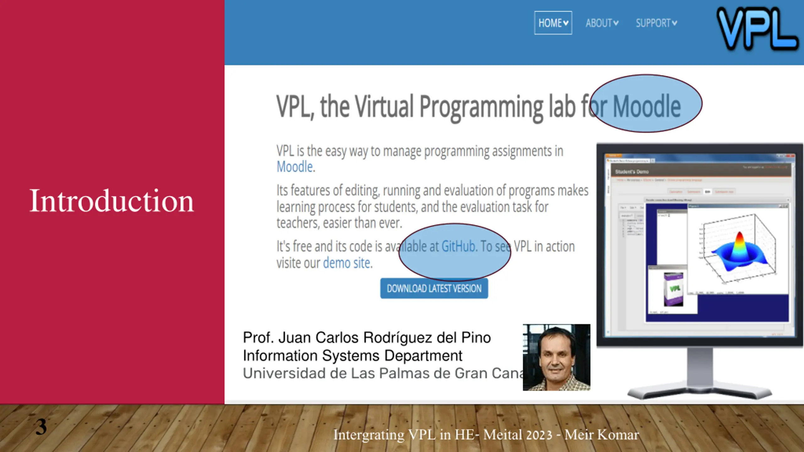 Introduction Prof. Juan Carlos Rodr guez del Pino Information Systems Department Universidad de Las Palmas de Gran Canaria 3 Intergrating VPL in HE- Meital 2023 - Meir Komar