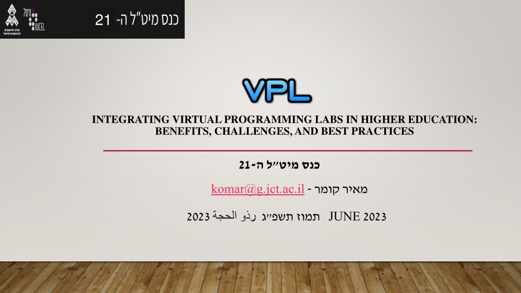 This presentation delves into the integration of Virtual Programming Labs (VPL) in higher education, highlighting its benefits, challenges, and best practices. It covers the concept of VPL, key features, supported languages, and a short demonstration. Additionally, it guides through creating a new VPL activity and provides insights into the format of VPL evaluation cases. The content emphasizes the importance of incorporating VPL to enhance learning outcomes and streamline assessment processes.