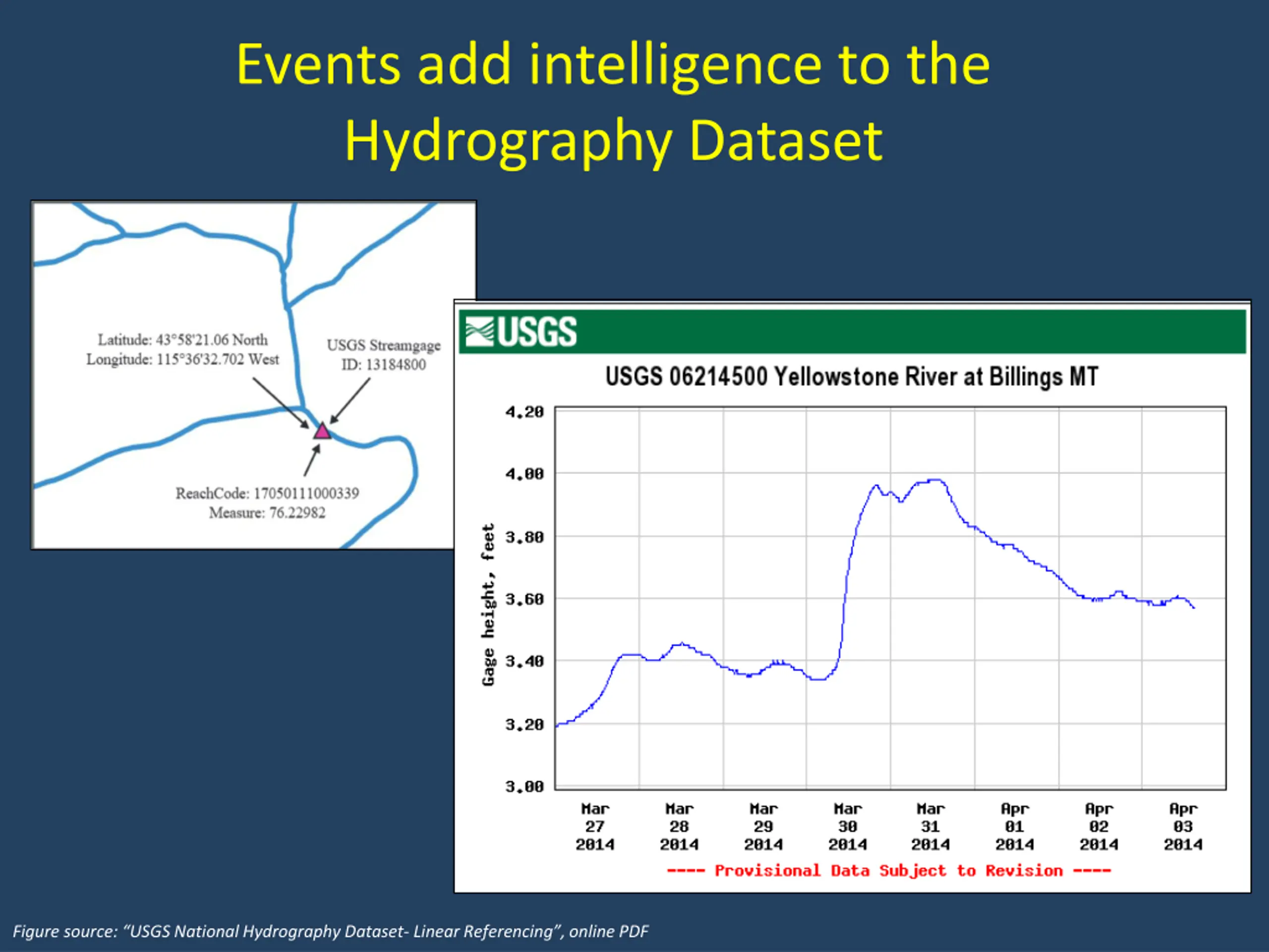 Events add intelligence to the Hydrography Dataset Figure source: USGS National Hydrography Dataset- Linear Referencing , online PDF