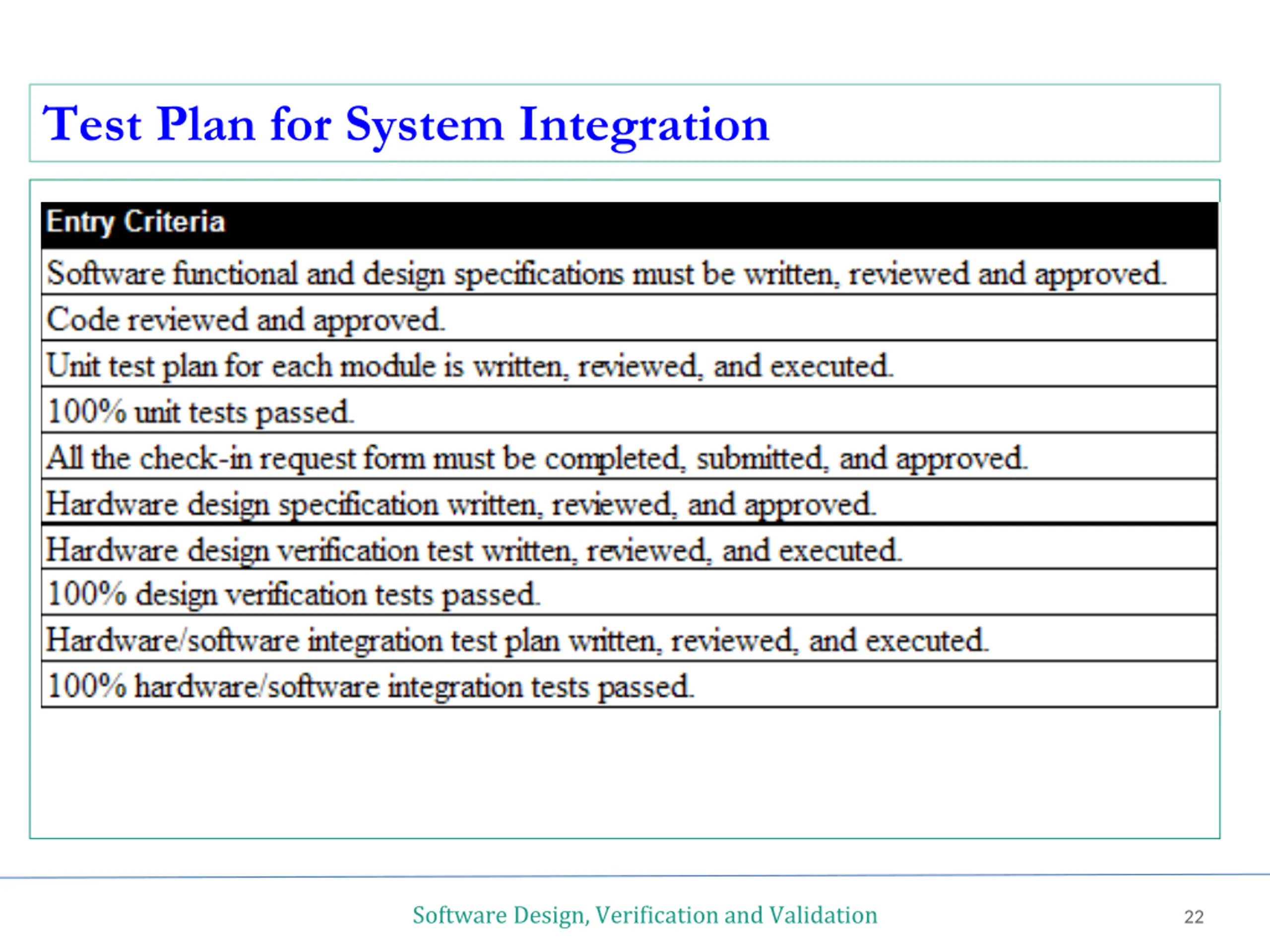 Test Plan for System Integration Software Design, Verification and Validation 22