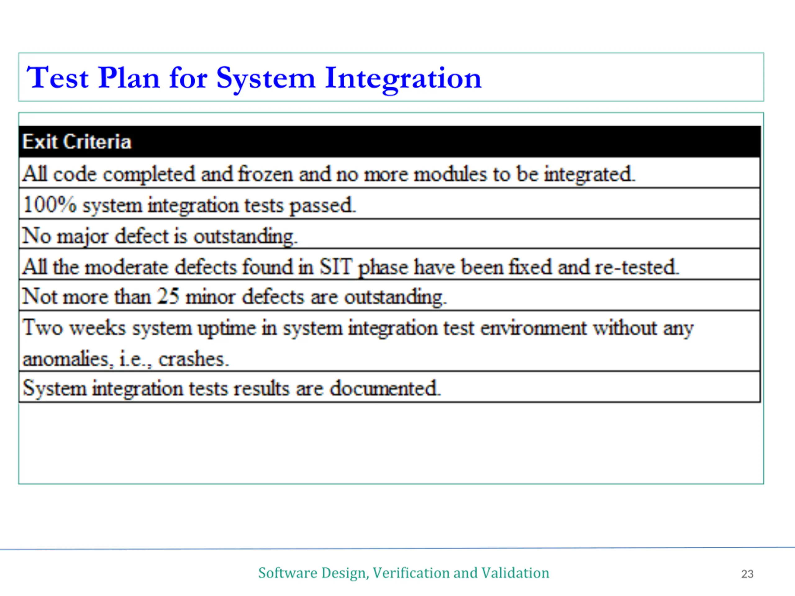 Test Plan for System Integration Software Design, Verification and Validation 23