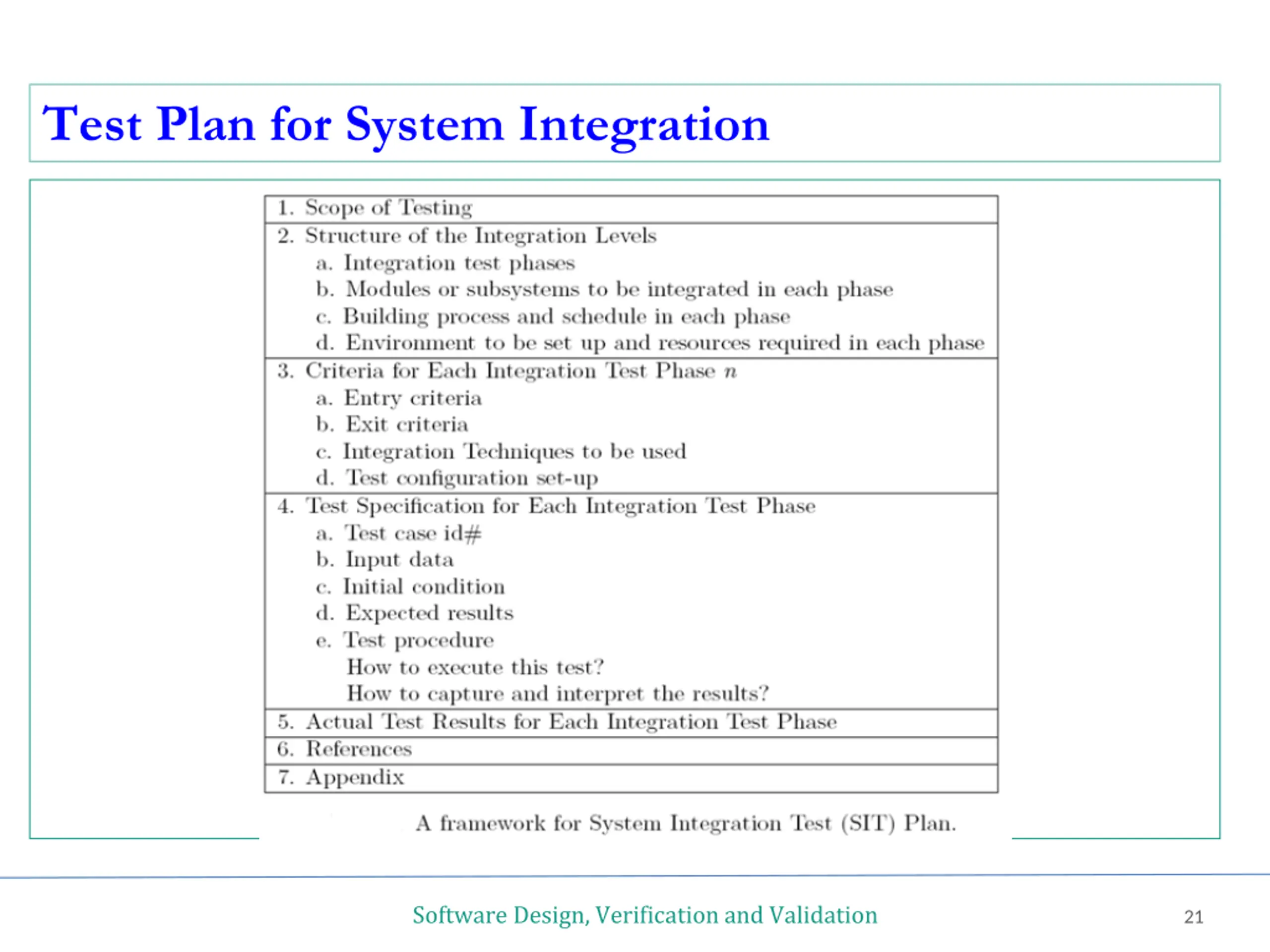 Test Plan for System Integration Software Design, Verification and Validation 21