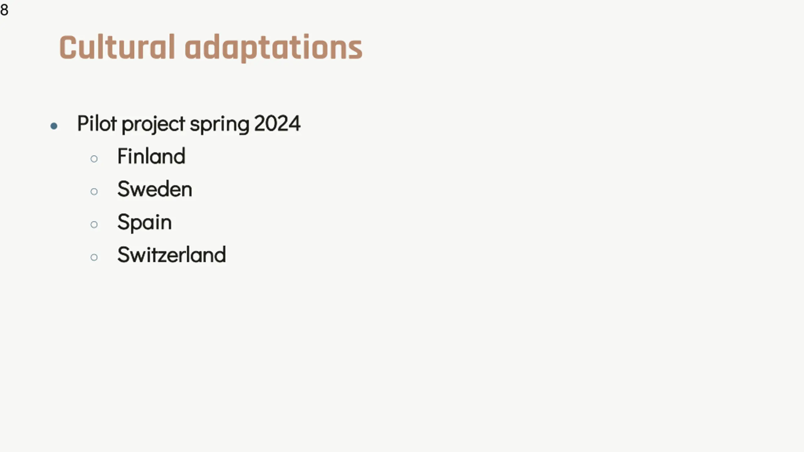 8 Cultural adaptations Pilot Pilot project Finland Finland Sweden Sweden Spain Spain Switzerland Switzerland project spring spring 2024 2024