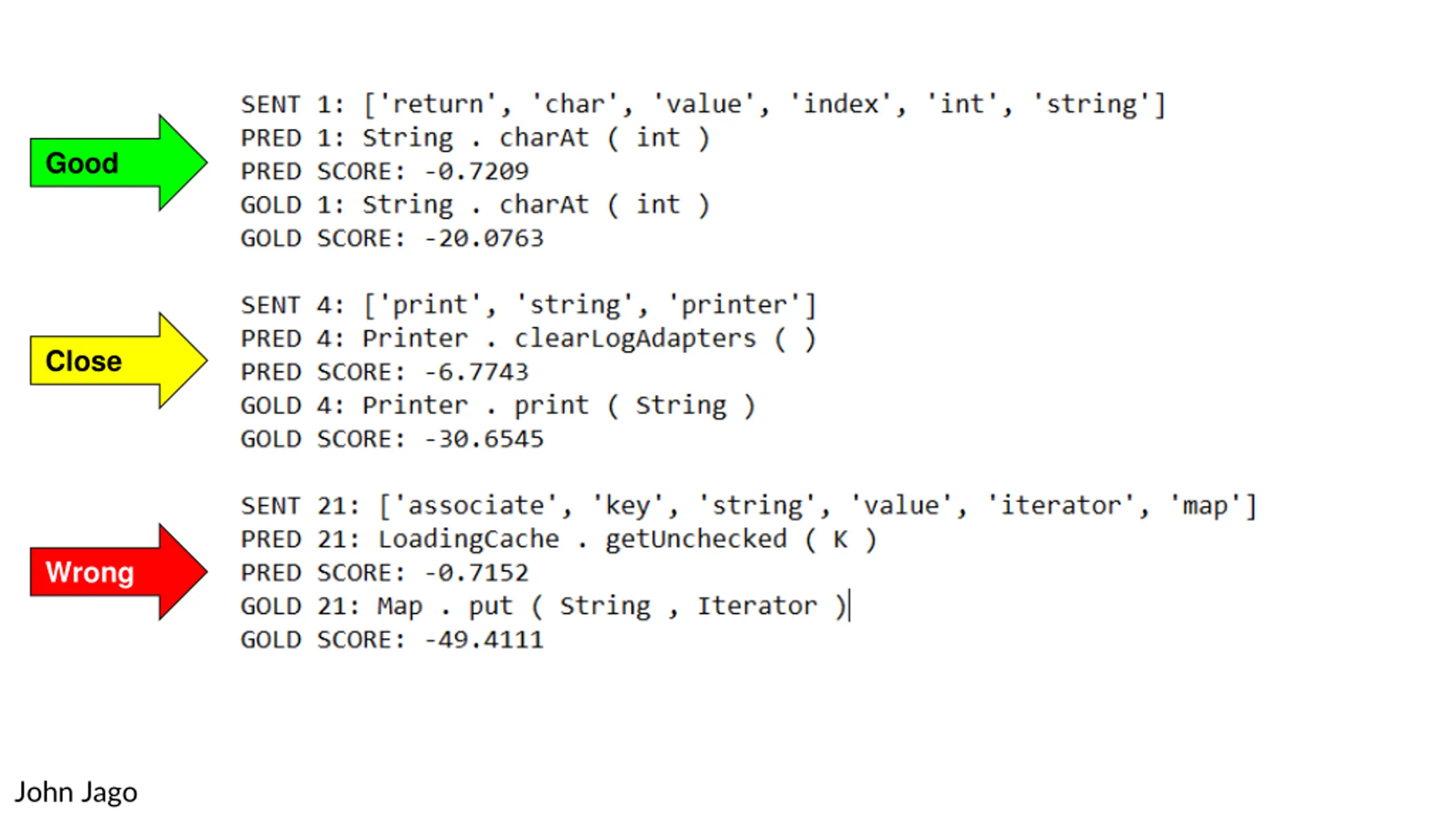 int x = 1; int y = 2; IDE max of int and int Preprocessing 1 Math.max(x, y); OpenNMT-py REST Math . max ( int, int ) Our model John Jago