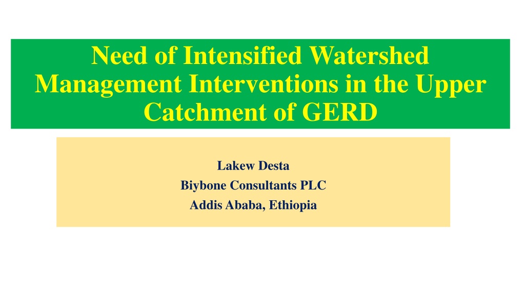 Need of Intensified Watershed Management Interventions in the Upper Catchment of GERD Lakew Desta Biybone Consultants PLC Addis Ababa, Ethiopia