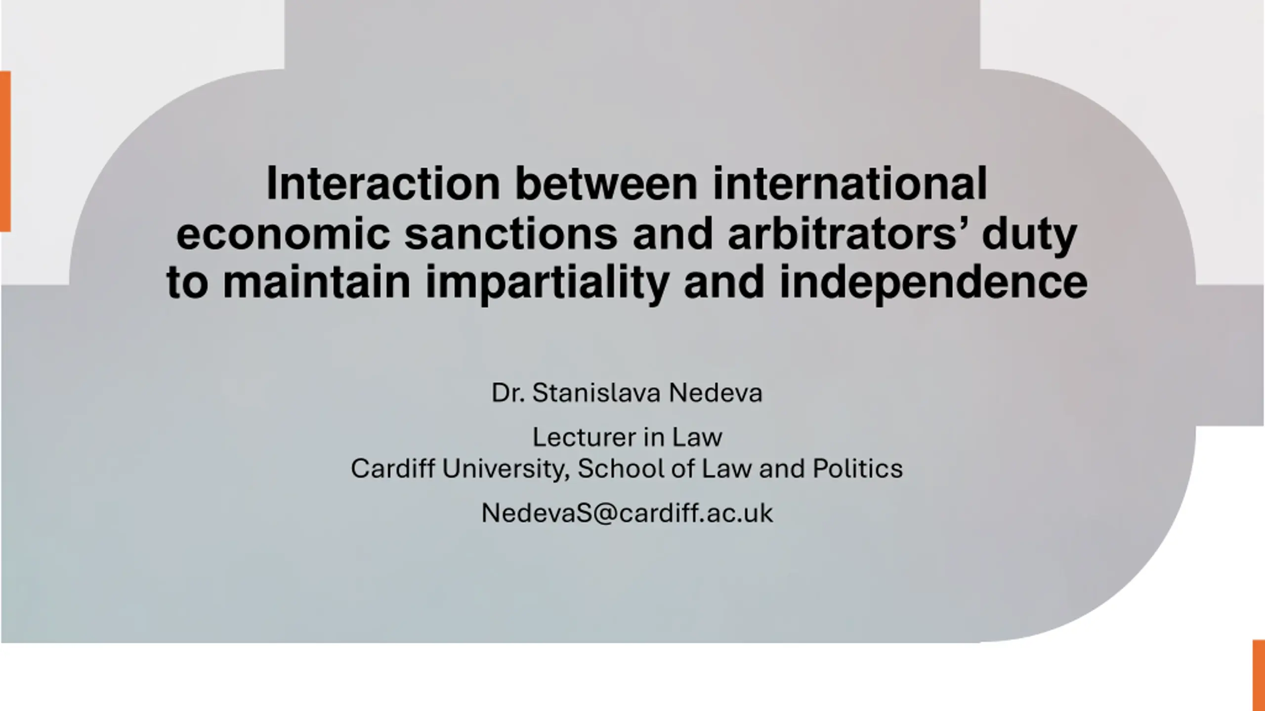 Interaction between international economic sanctions and arbitrators duty to maintain impartiality and independence Dr. Stanislava Nedeva Lecturer in Law Cardiff University, School of Law and Politics NedevaS@cardiff.ac.uk